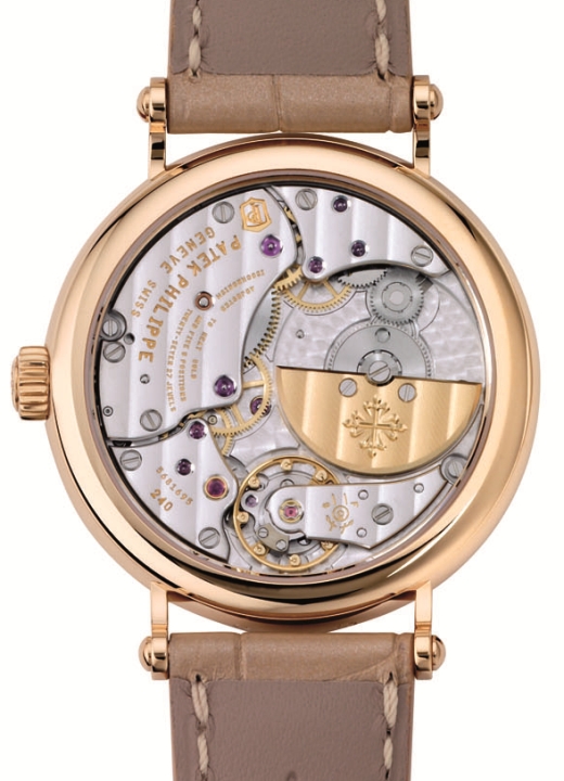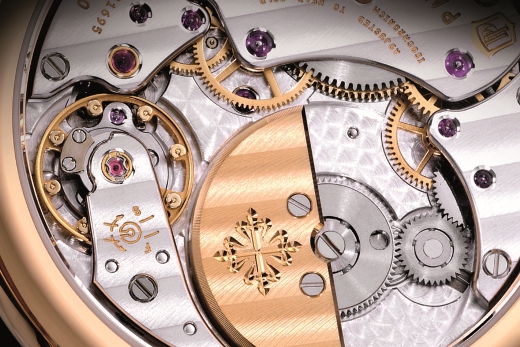 Механизм Patek тоже очень приятно наблюдать, но предыдущий механизм на основе Калибра New Lemania более очаровательный. Создается впечатление, что Patek упростили задачу отделки благодаря умному сочетанию различных элементов: они являются привлекательными, но в тоже время не так уж и сложно декорированы.
