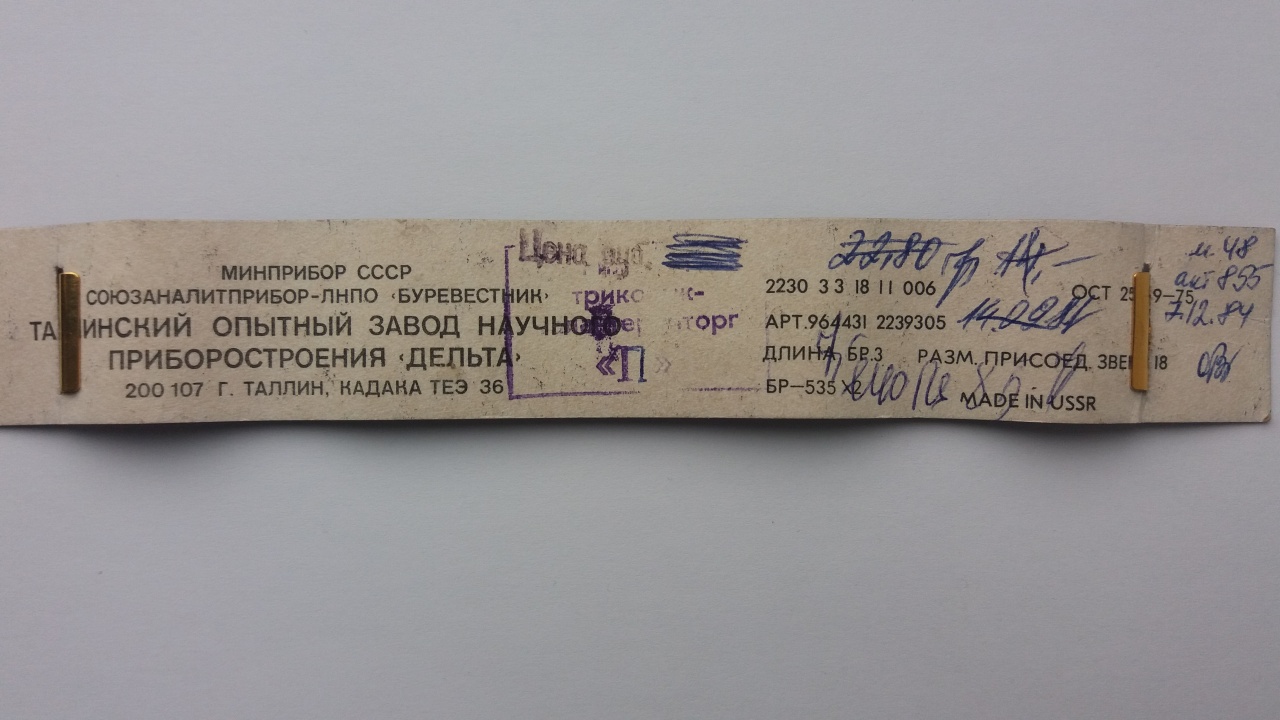 Около года тщетно пытался найти в Риге приличный, пусть и б/у советский позолоченный браслет для позолоченного "Восток" 2209 середины-конца 1960-х годов. В итоге, получил вот такой NOS браслет, изготовленный на Таллинском ювелирном заводе. Ведомственная принадлежность последнего тоже интересна. Сведения с сайта Архивы Санкт-Петербурга