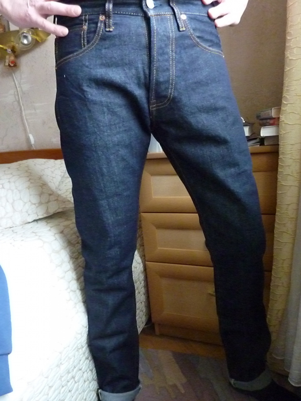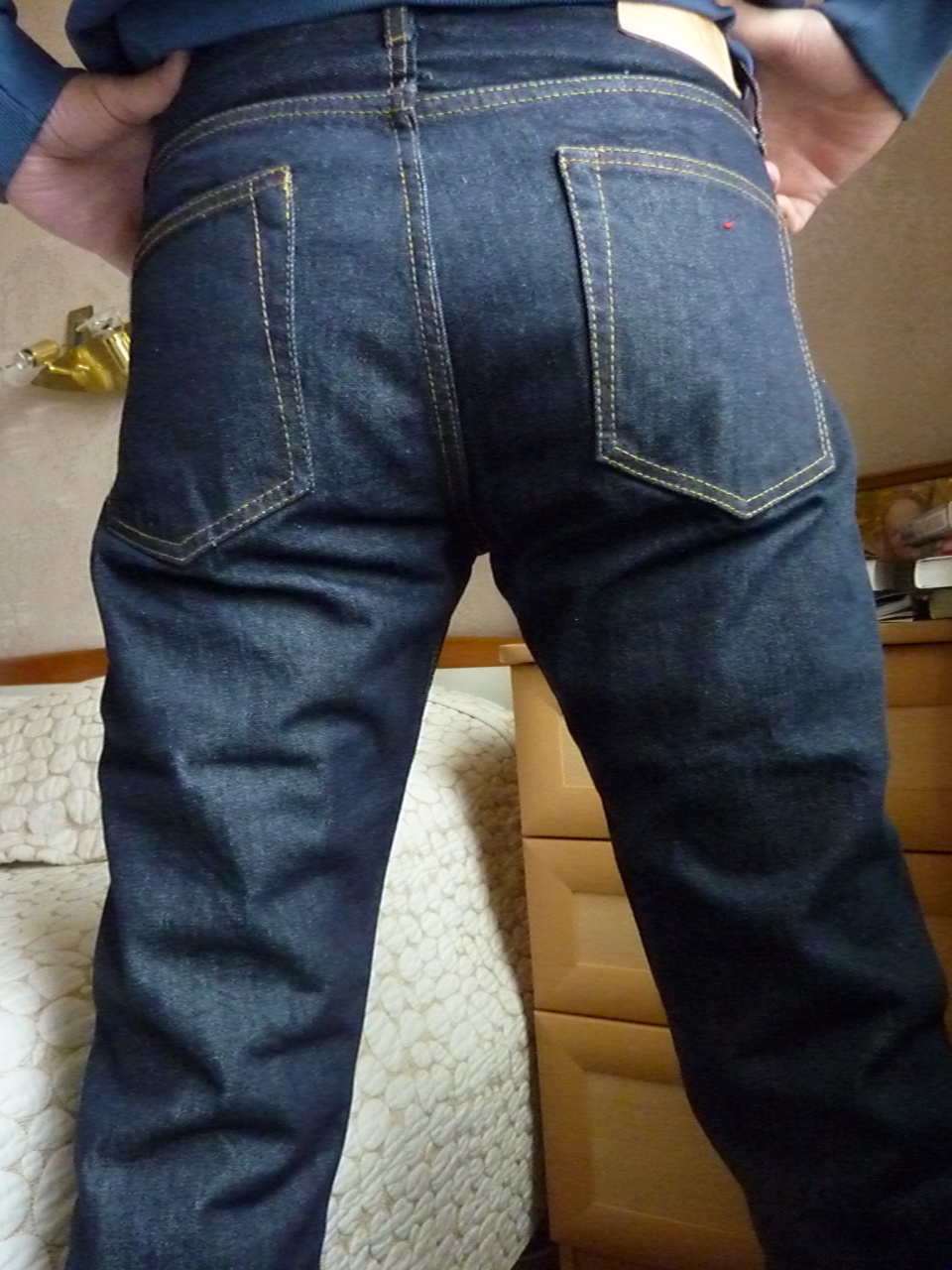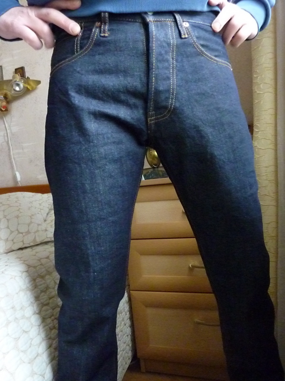 Джинсы оказались вполне добротные, аккуратненько пошитые, деним плотный и мягкий, показался даже плотнее заявленных 13 коз (но, это до первых стирок, полосканий), one wash. Цвет стандартный, может чуть темнее обычного, материал показался похожим на каихаровский (ну, это личное восприятие), без слабби, но и без "полированной" поверхности.