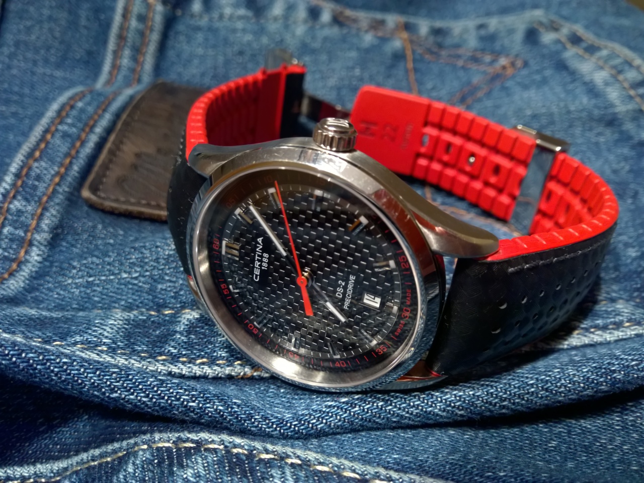Мне очень понравилось, как они сели на руку и ощущались. На каучуке просто прекрасно. Но, как я заметил продавщице, такие дорогие часы (для меня) на каучуке я воспринимать не готов. Вот Сертина на каучуке - пожалуйста. Но вещь намного дороже 100 тысяч рублей как-то с каучуком у меня не очень вяжется, хотя и знаю полно еще более дорогих примеров (хотя бы Бреге Марина с каучуком очень неплохо выглядит).