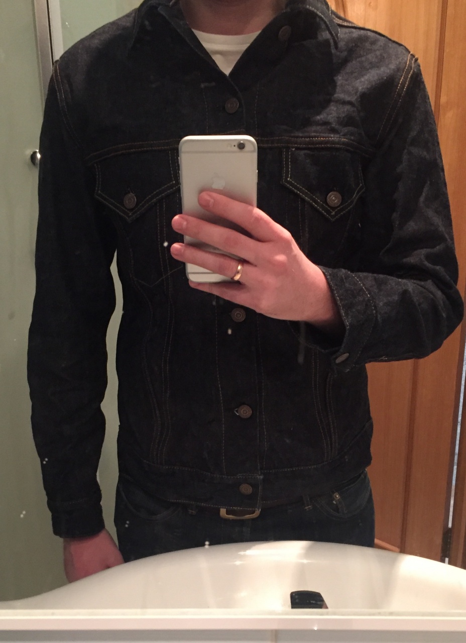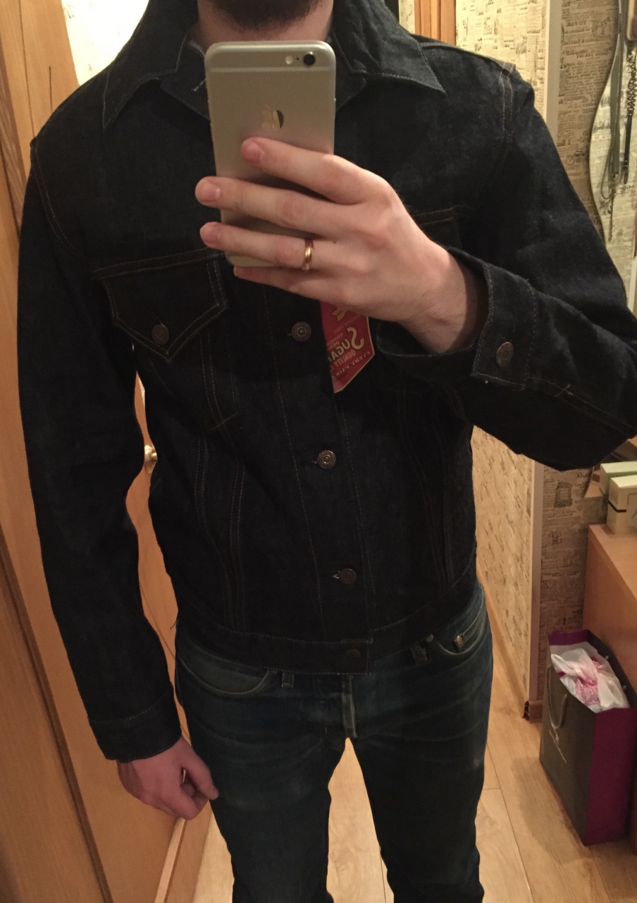 Вещь выполнена из вполне аутентичного денима. Видна текстура. Так же как и на джинсах, постепенно будет образовываться фейд.