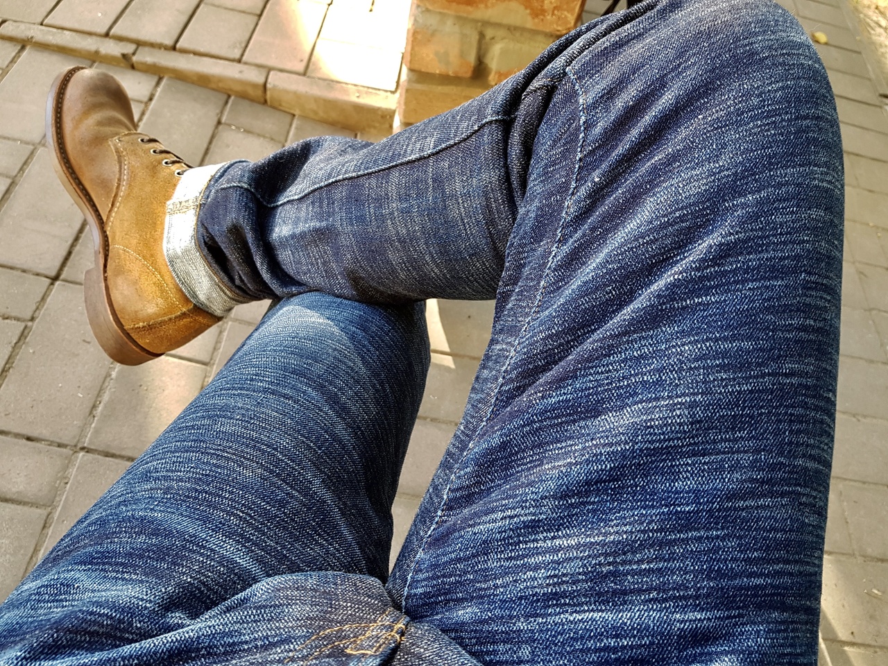 Результаты усадки Momotaro 0601-20oz, 31 размер таковы, что инсим сел на 2 см, с 92 до 90, а пояс в сложенном состоянии с 42.5 до 41 см. Какая-то странная пара мне досталась  Усаживал 3 раза в максимально горячей воде из крана, но она горячая условно, руку опускать можно, не сварится. Больше старался вымыть крахмал, потому что даже после второго замачивания, проводя рукой по материалу на ладони оставалось как липкое мыло. Итогом доволен, немного свободный крой получился с умеренно широкой штаниной. А деним конечно та еще фанера