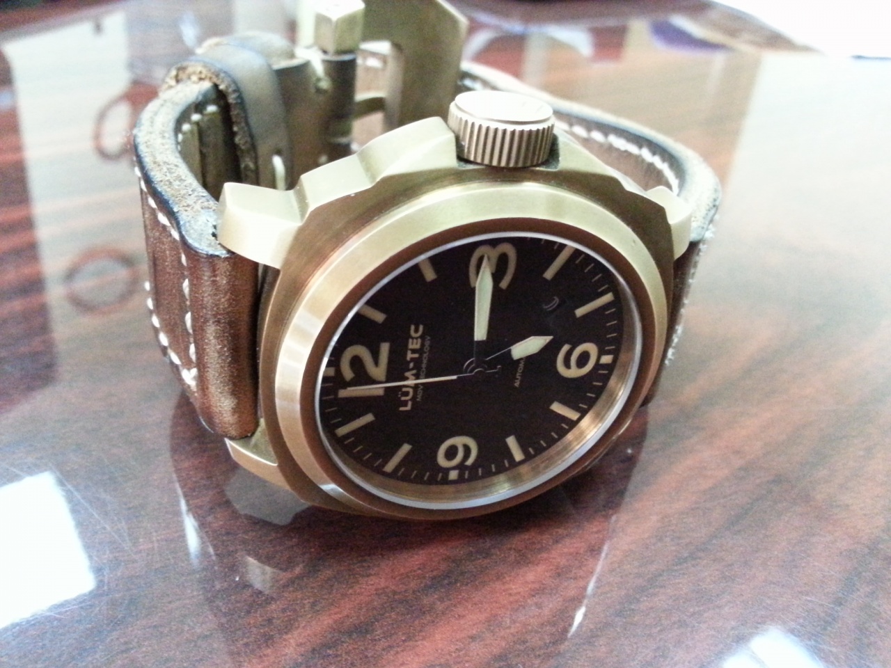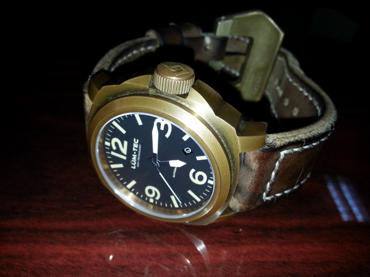 По старению могу сказать следующее - я их никак специально не мочил-натирал и бронза старела медленно. Прошел почти год с их производства и сейчас часы приятного коричневатого цвета (ближе к молочному шоколаду). Есть любители быстро состарить бронзу до позеленения, но это не ко мне