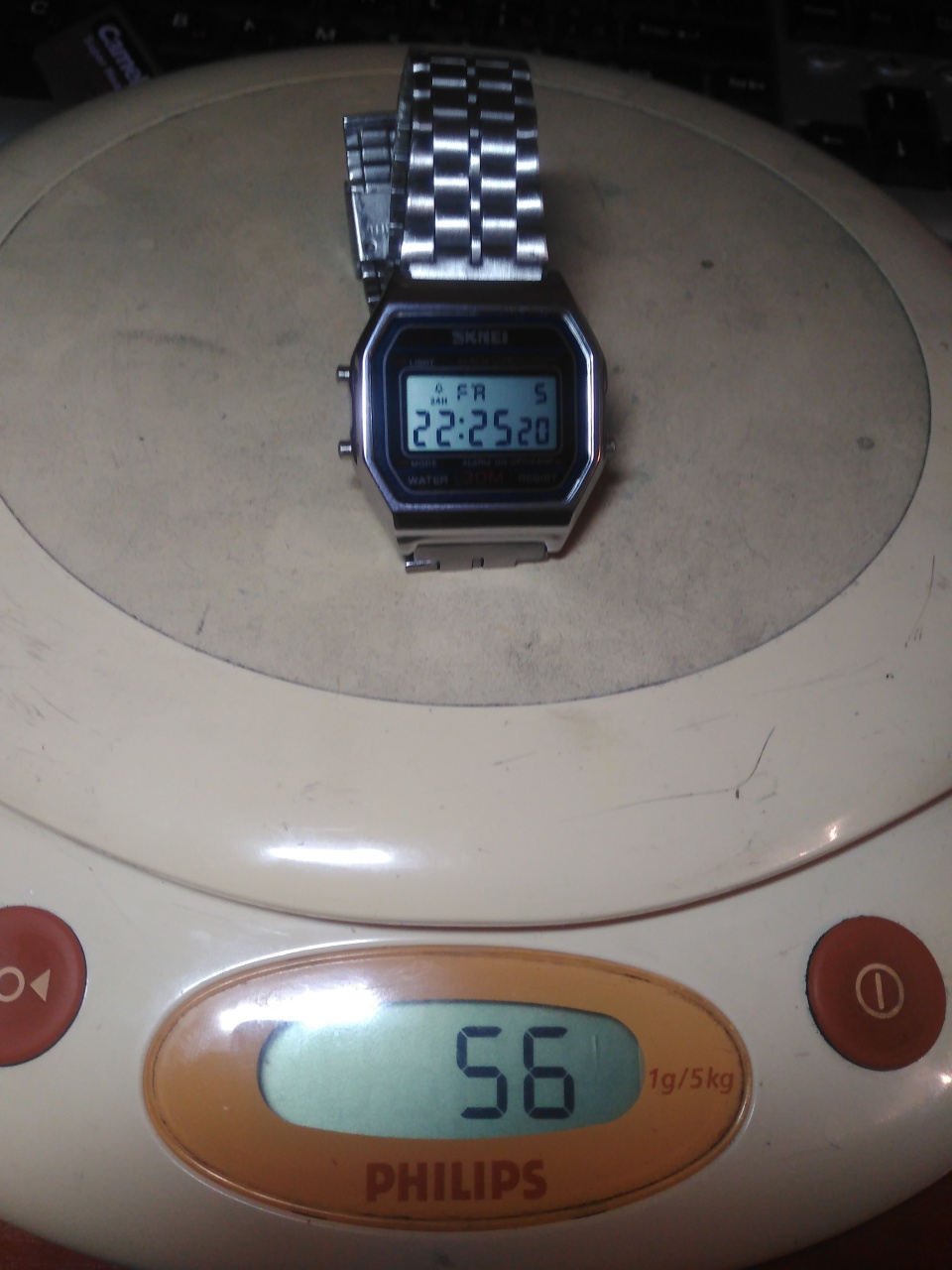 Вот сколько весят A-158. Skmei, видимо, столько же примерно - я просто не понял, какие именно у Вас. У меня сейчас их нет - трое Скмеев вылезали из 45 секунд в месяц и я их поотдавал детям.