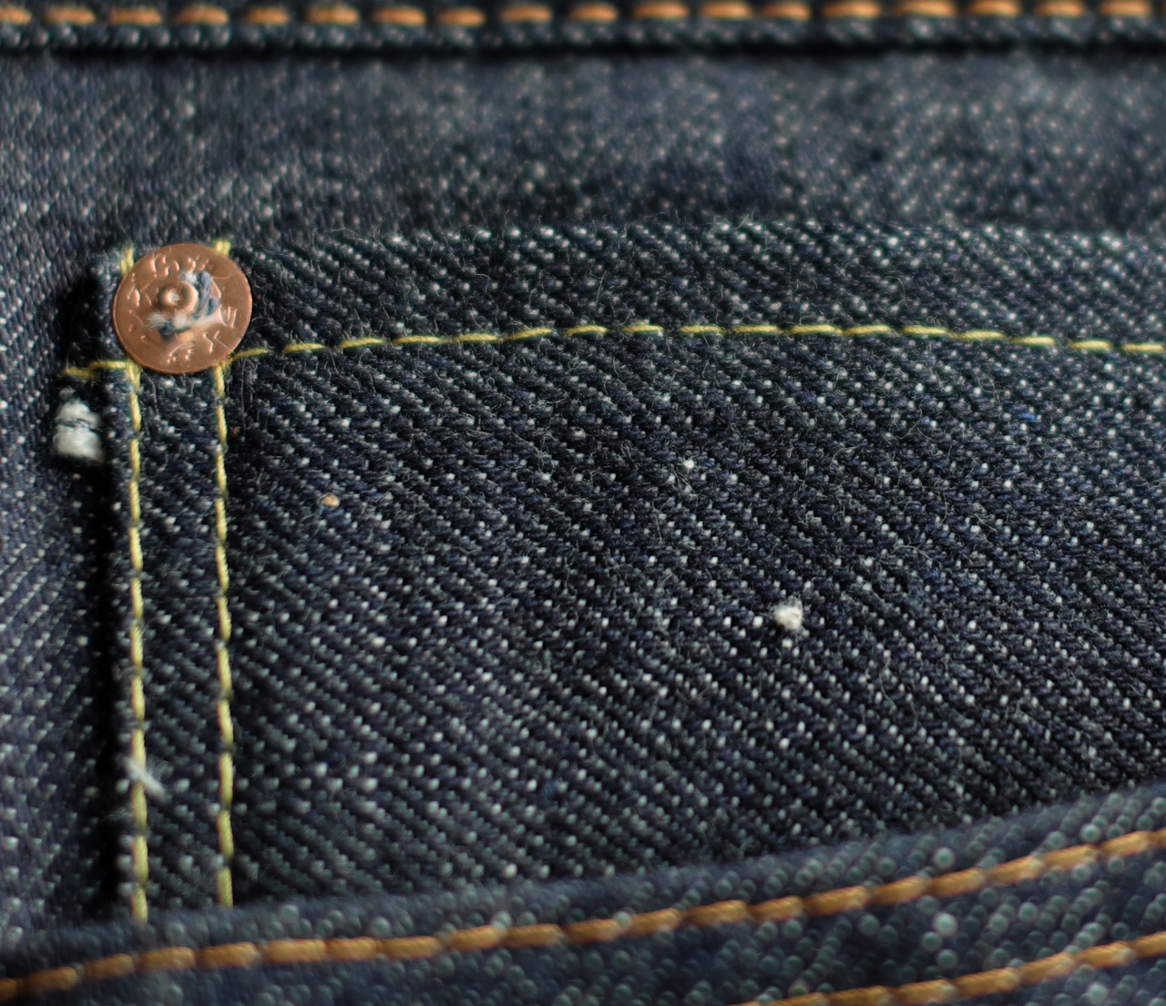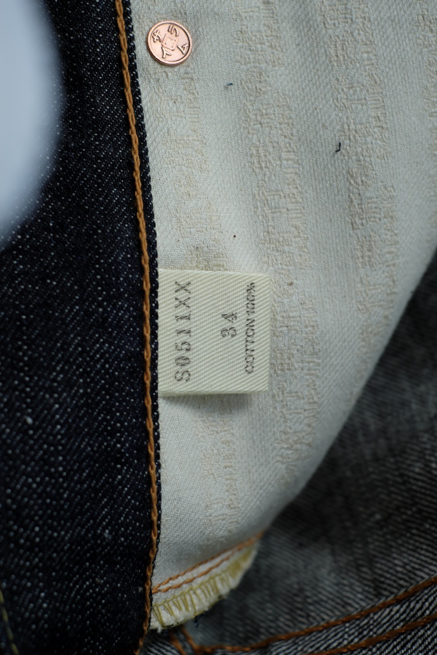Исполнение, как и у большинства японских штанов, - безупречное. Деним показался более грубым, хотя должен был-бы быть таким же, как и на 505-х. В нем даже встречались включения крошки от хлопковых коробочек.