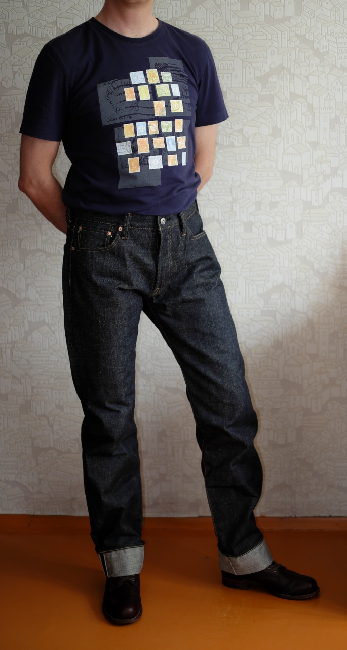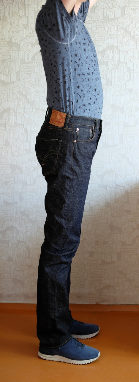Как я уже упоминал в обзоре джинсов SAMURAI S0505XX-RR, я был слегка разочарован тем, что модель, заявленная в описании на BiG как slim tapered, на самом деле оказалась таки slim straight. Короче, покупкой я остался не удовлетворен. Однако деним мне понравился, хоть он и жестковат.