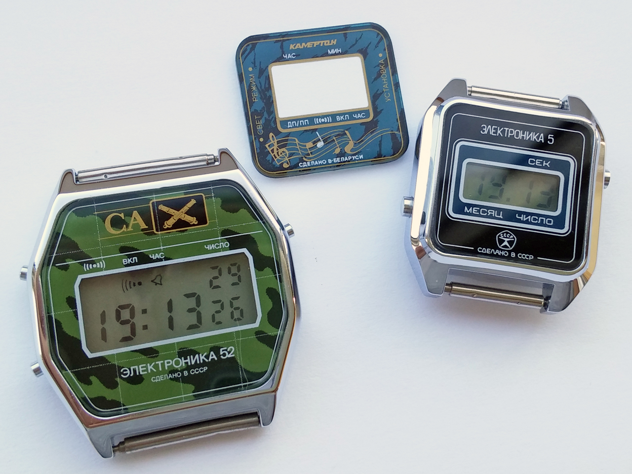 Почему с иностранным? В моих вполне отечественный на вид, да и судя по году разработки, тогда еще было проще сделать своё, чем покупать за рубежом. Хотя часы и весьма необычные.