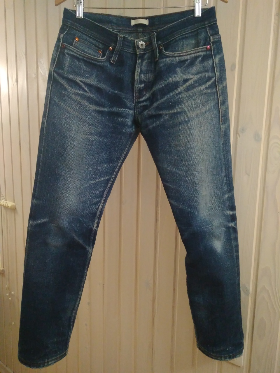 А вот к 21OZ симпатии улетучились быстро. Поначалу джинсы мне понравились. Хотя и видно, что сделаны они гораздо грубее такой же модели UB 14OZ (за 80-90$ на это можно не очень обращать внимание). Но прошло пару месяцев, а деним так и остался "фанерным" и жестким даже под коленом. Причём это был период заметного сброса веса и на то время это была вообще единственная пара джинсов, подходящих по размеру т.е. носились джинсы регулярно. Побороть их так и не смог и сам материал положительных эмоций по итогу не вызвал.