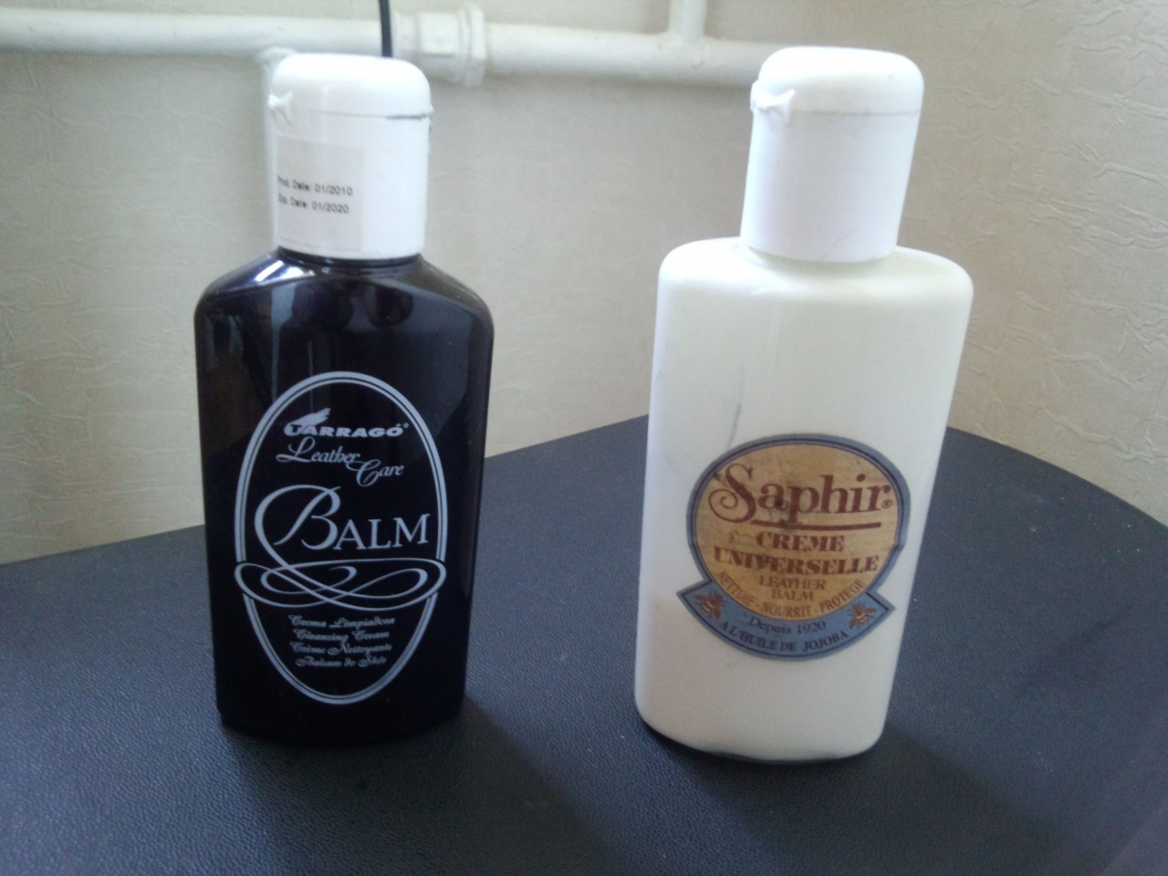 Никогда не пользовался бальзамом-очистителем и не буду, потому-что это развод на деньги безграмотных потребителей. Тряпка и ведро с водой лучшие очистители. Для полировки (постоянного ухода, так как не полирую) я пользуюсь гуталином (который в железной банке schuhcreme). Для влагозащиты наношу ваксу (которая в стеклянной банке schuhpomade) два раза в год. И больше ничем не пользуюсь, так как в условиях города этого достаточно. Для загородных прогулок, защиты от соляных разводов и прочего экстрима с водозащитой могу посоветовать попробовать Burgol Golfwachs: