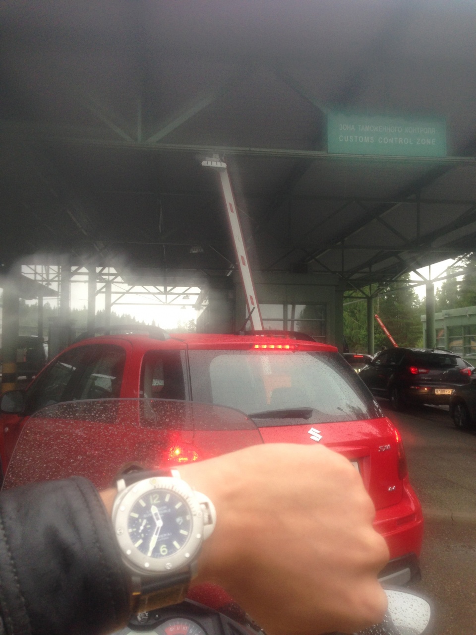 Буквально пара часов, и вот я уже вижу километровую очередь на таможне "мда, так себе" да еще и встречают нас соседи хорошим таким дождиком... Но не зря же я получал категорию "А" буквально пара минут и я уже четвертый, хоть немного промок, но холодно не было, спину мне согревали теплые взгляды тех, кто остался позади, приношу им свои искренние извинения...