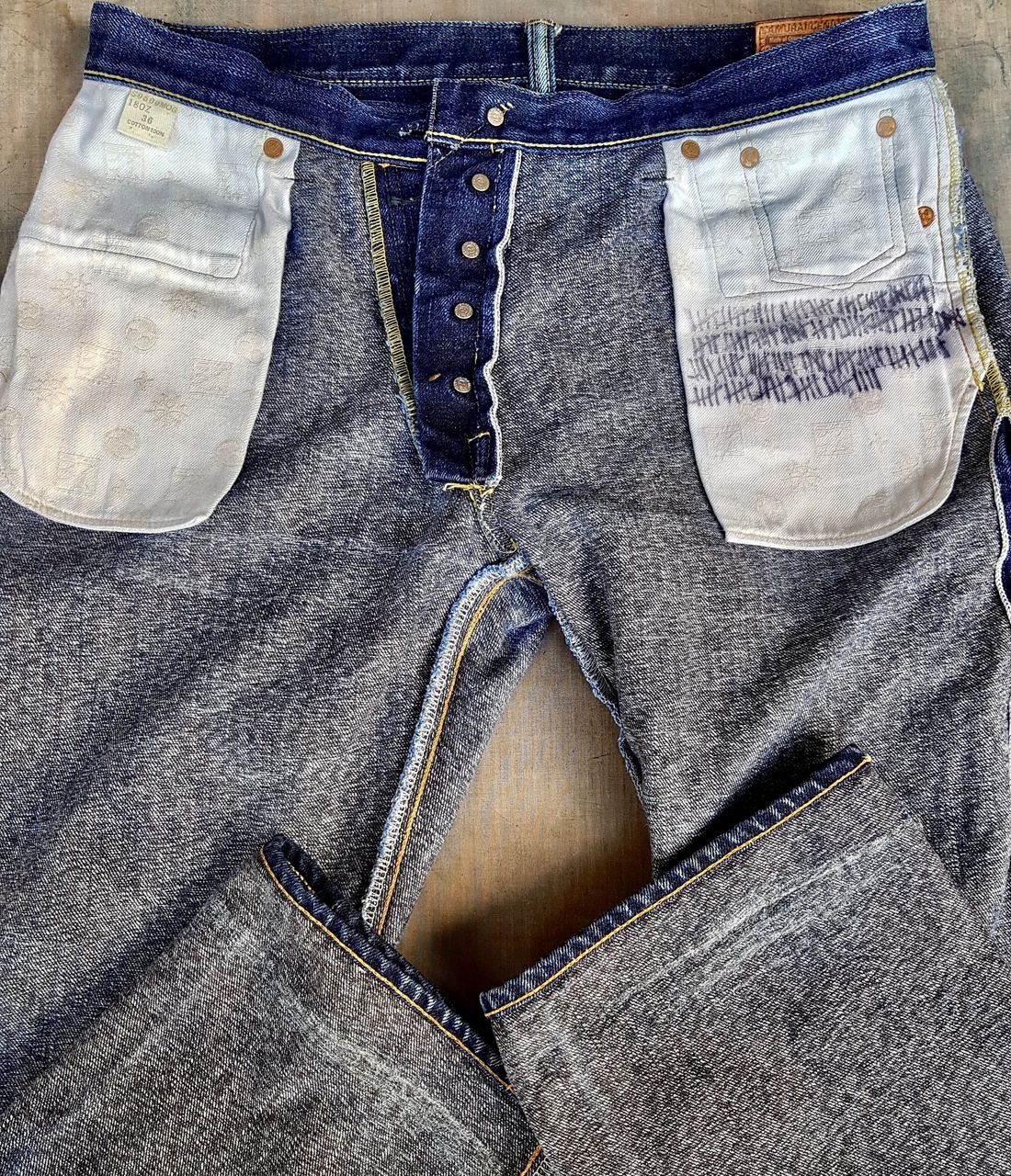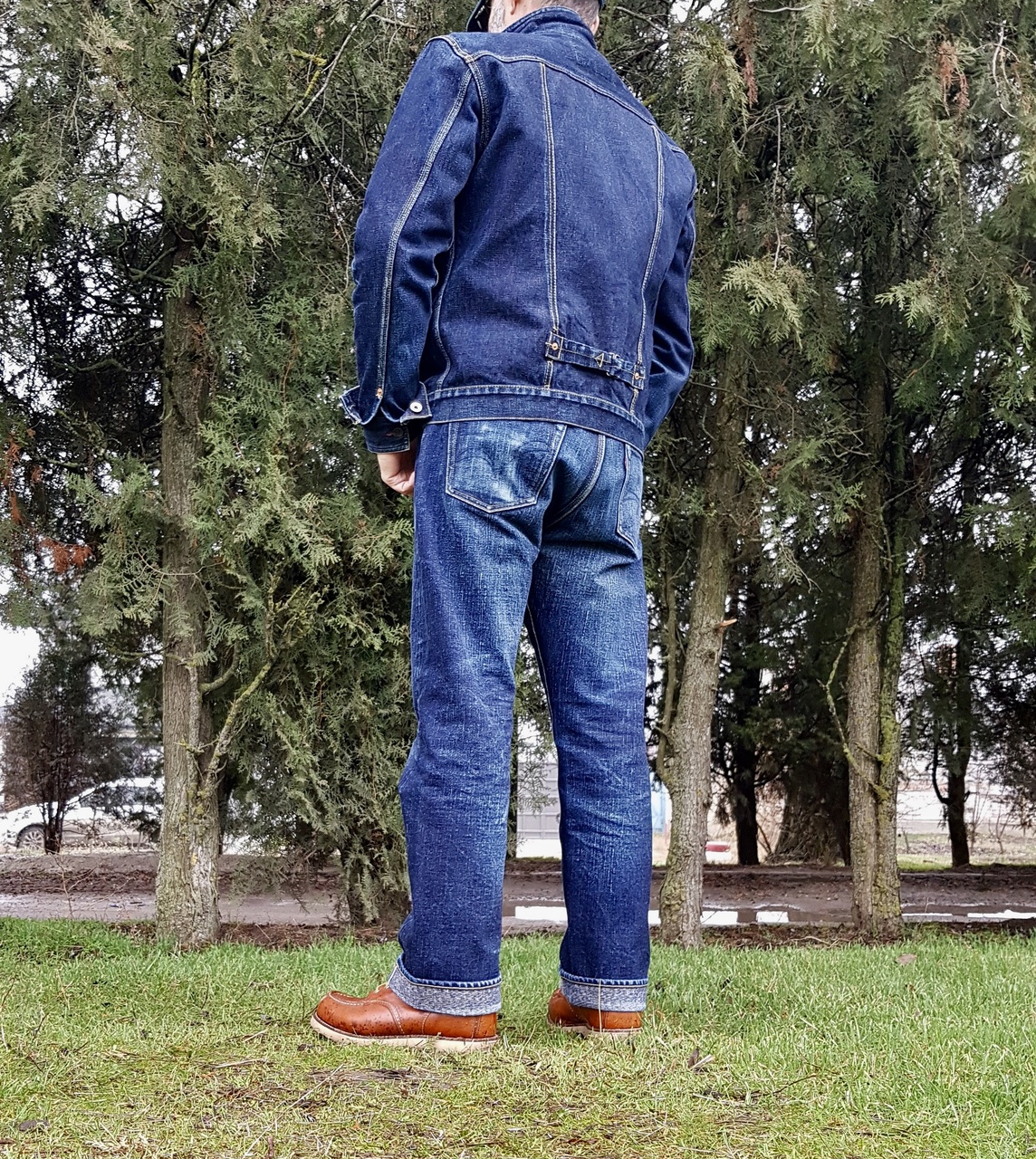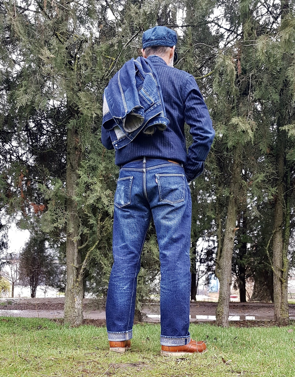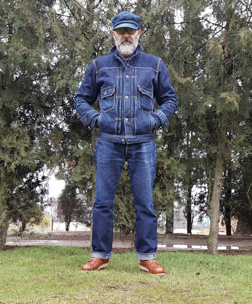 Поделюсь немного впечатлением о моих самых тяжёлых джинсах от китайских товарищей. Вес указан до 20,5 oz. Купил их в распродажу 11.11. Вторую неделю ношу. Уже один раз крутанул их в стиралке в 40° и 400 об отжим. В Поясе уж больно широки были. Вторые мои штаны от sauce zhan. Первые 18oz в немнго более широком фите (316), ношу год. 3-4 стирки. Точно не помню. На фото новые ещё не стиранные. Реально выглядят и те и другие на много темнее. Синий уток до стирки имел небольшой стальной отлив. А снаружи очень тёмные и матовые нитки. Кстати, химического запаха, как от прошлогодних, не было. Руки и всё вокруг себя, джинсы красят довольно сильно. Даже после стирки, руки синие постоянно. Фит не совсем мой. Через икры с трудом стягиваю штаны, и внизу отверстия на 1,5 см меньше, чем в 316ом фите. Вроде как тяжёлые джинсы для зимы, и соответственно ботинок. Хотелось бы чуть побольше отверстие внизу. Предыдущие довольно долго "обкатывались" по фигуре. Теперь сидят идеально удобно. Эти, надеюсь, со временем тоже сядут как надо. Сам деним, довольно фактурный. Швы местами достаточно небрежно сделаны. Не то что бы кривые. Этого нет. Но как то нарочито кустарно. Кстати заклёпки на этой модели классные. Прям как будто зубилом буквы набиты. И металл достаточно толстый. Деним довольно плотный, но уже немного начинает "распушаться". Кстати в -30 в них ходить минут 10-15. Без подштаников вполне себе комфортно. Себя фотографировать в зеркало, то ещё занятие. Поэтому на себе фото не будет. Извините. Надеюсь, что этими штанами закрывал для себя тему тяжёлого денима. Есть много всего уже. Носить не переносить. За год двое соусов и двое red tornado приобрёл. На уме ещё IH 25 oz. Но это только если подружусь с этими 20тиозными. Всё же джинсы для меня, это в первую очередь, удобство и практичность. А эстетика и джинсовые легенды уже вторичны.