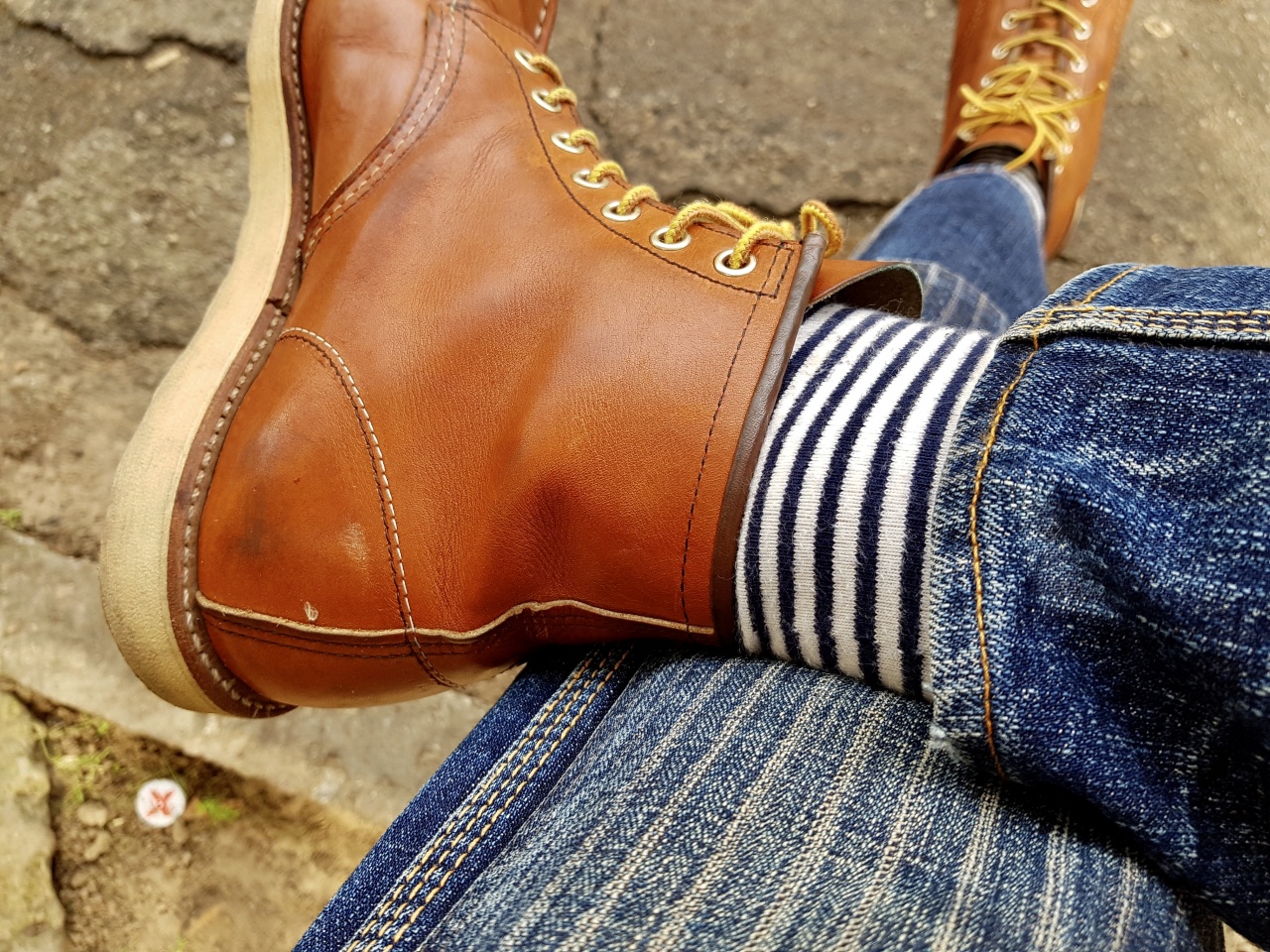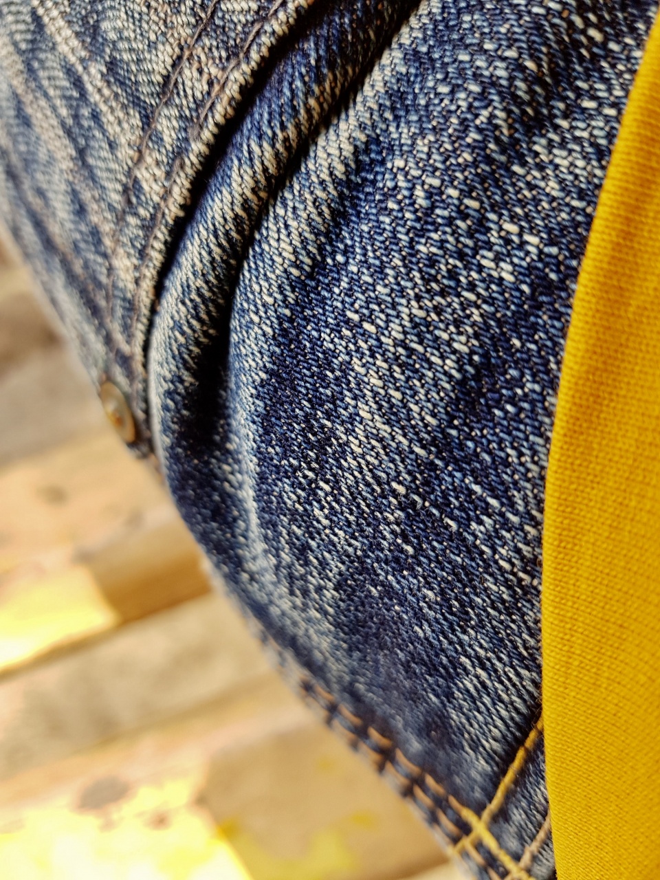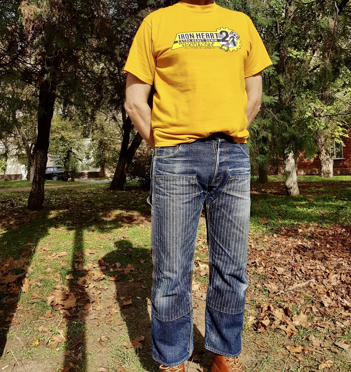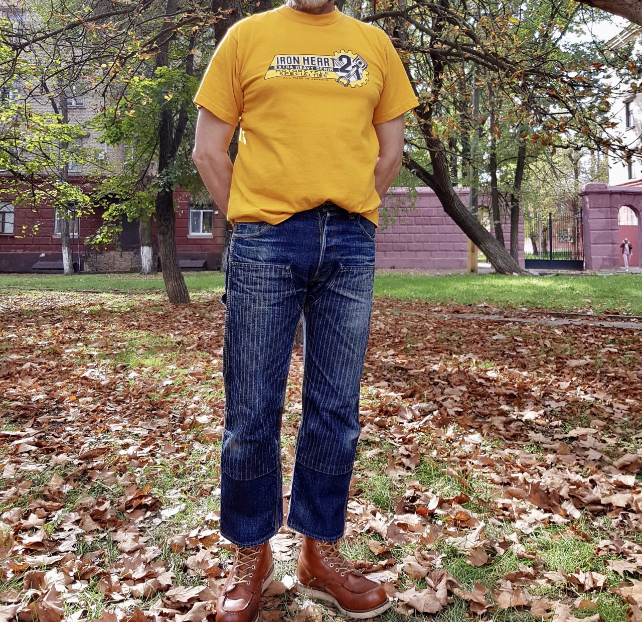 Сборка изобилует интересными деталями , особенно замечательно смотрится микс 15 унцового Отокоги и полосатого фактурного 17 унцового ( плетение herringbone) ... на выходе имеем богический фэйд ... потрясающе красивый штан