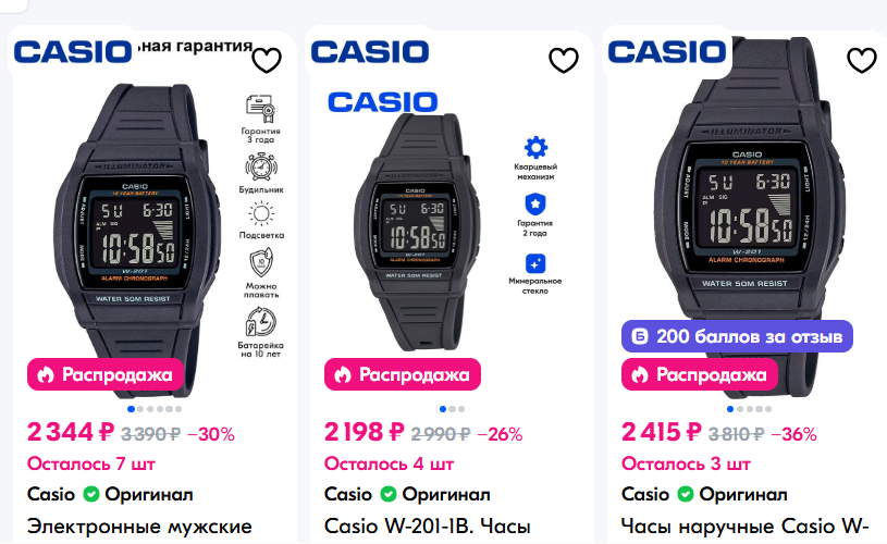 Casio W-201 - на фото традиционное исполнение и нынешние исключительно инверсные предложения на ОЗОН).