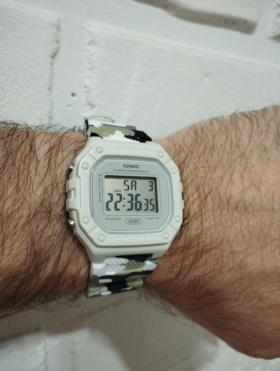 Поэтому считаю, что обзоры на электронные часы сегодня в ОБЯЗАТЕЛЬНОМ порядке должны показывать часы под всеми углами восприятия для понимания, можно ли ими адекватно пользоваться на руке. Ну и подсветку, само собой. Потому как гордое, некогда привлекательное коммерческое название линейки Illuminator, подразумевающее равномерную красивую люминесцентную подсветку, скатилось в жалкие бледные светодиоды ради экономии ресурса батарейки и удешевления технологии подложки дисплея.