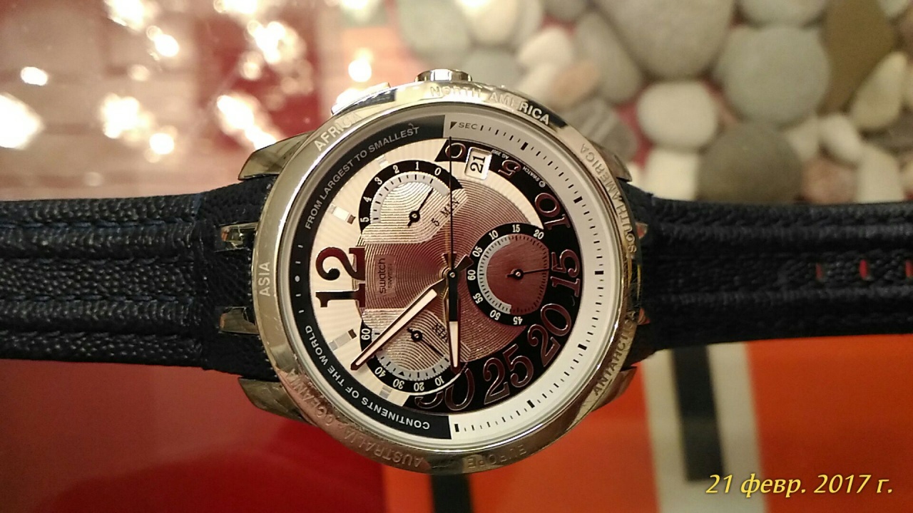 Купил своей супруге в качестве подарка на приблежающееся 8 марта Свотч ретроградный хронограф. Очень красивые часы.