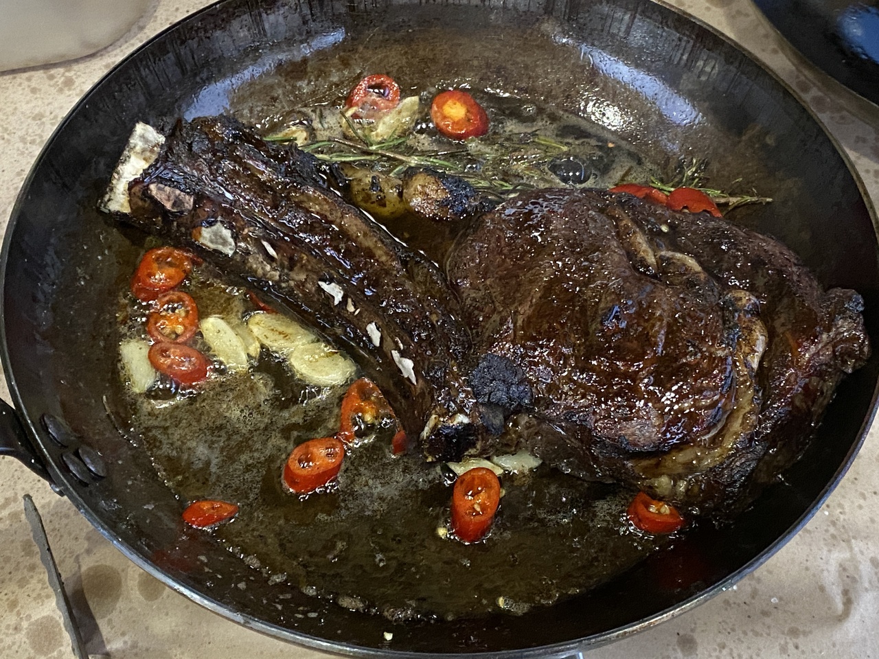 Сначала на гриле, потом в духовке и окончательно на сковороде.