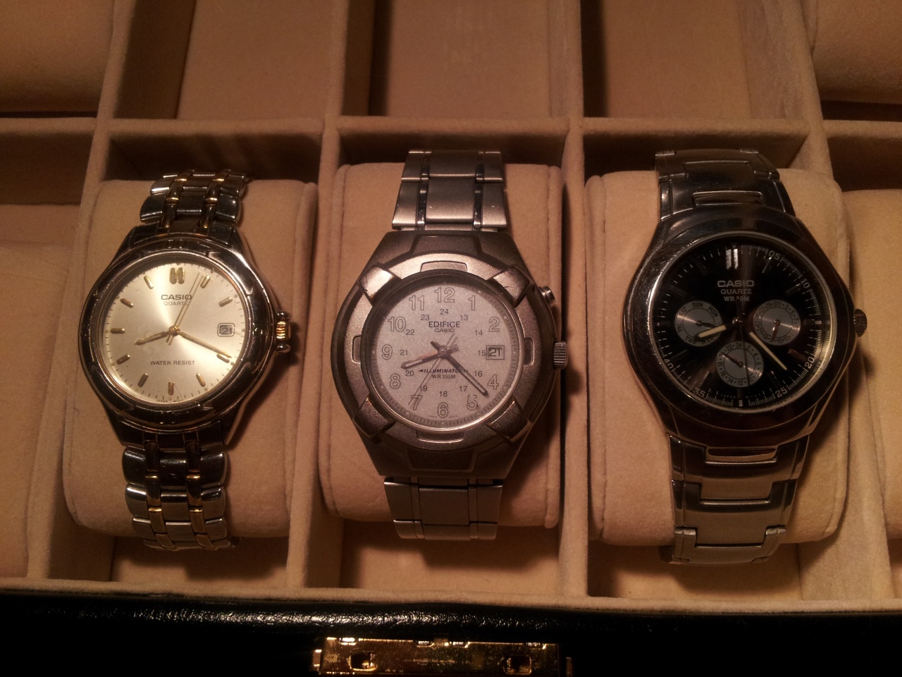 Casio: DB-E30D, EF-555D-1A, G-Shock DW-5600EG-9VQ, G-Shock AWG-M100-1ACR, Pathfinder PAW-2000-1CR Citizen: CB0011-51L