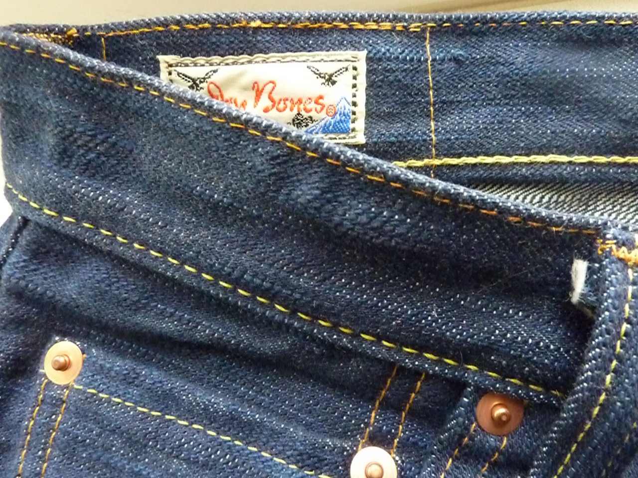 Dry Bones Natural Indigo Hank Dyed Jeans: SEXDB19, плотность 14, 75 оз, с суперпуперобработкой денима Natural Indigo Hank-Dyed Warp Yarns, Natural Undyed Weft Yarns.