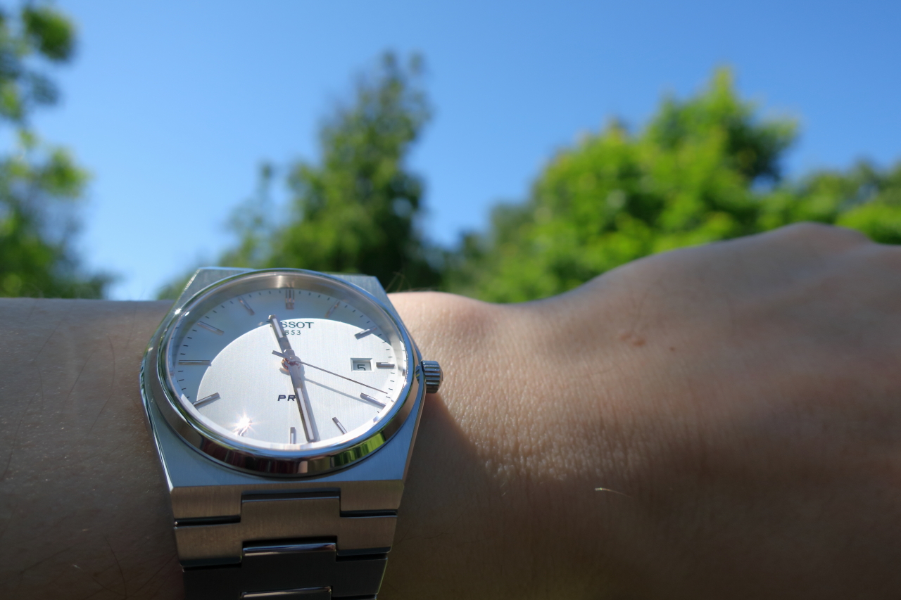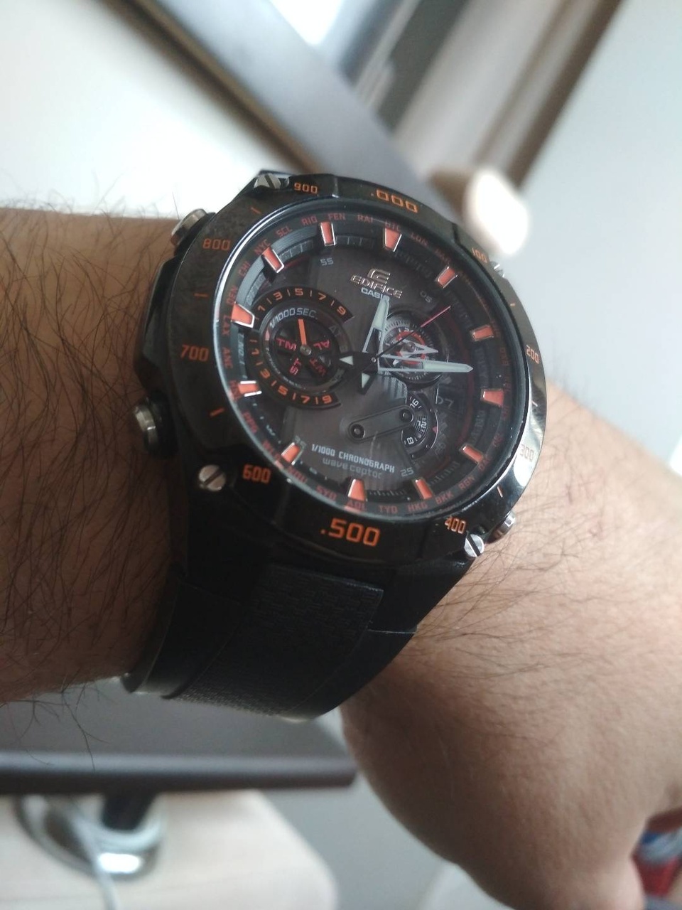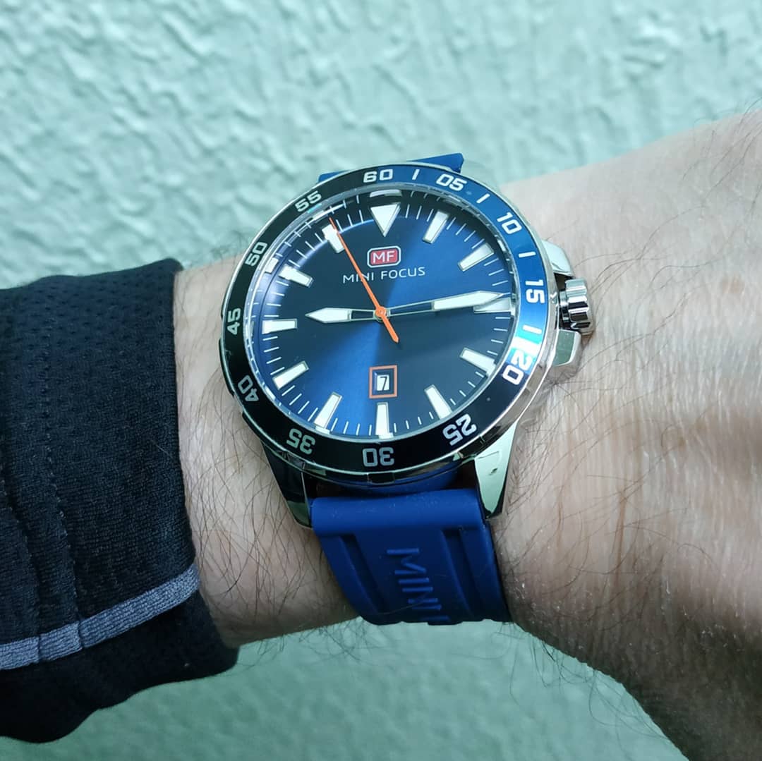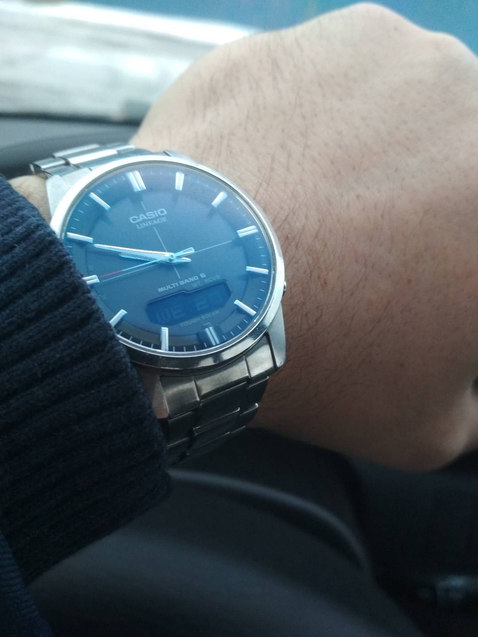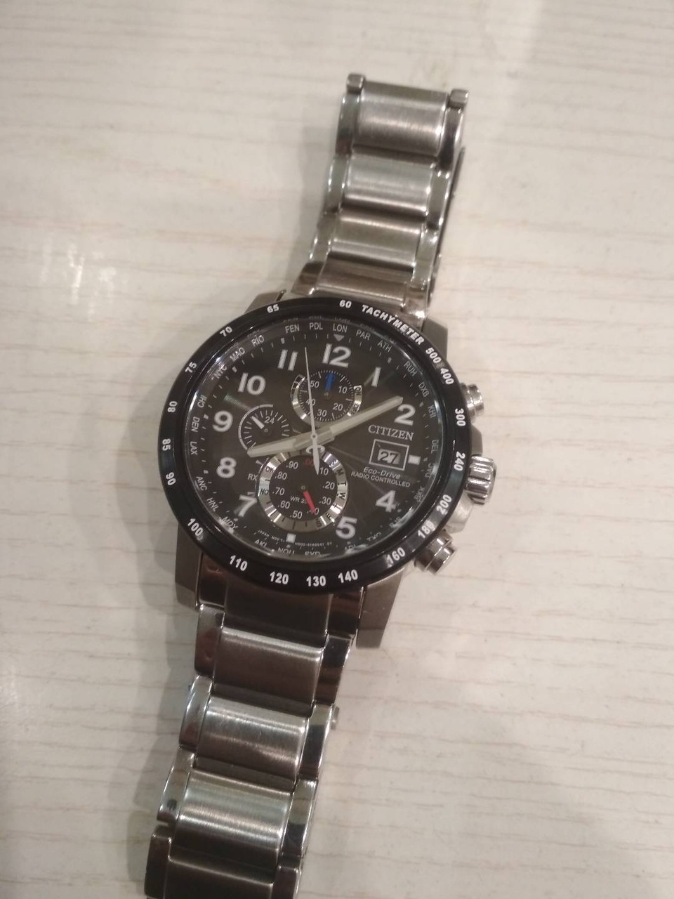 Два шаговых мотора — по одному на каждую стрелку. Часы умеют в текущие часы и минуты, секундомер с точностью 1/5 (минутная становится секундой, часовая — накопителем на 60 минут), таймер обратного отсчёта до 60 минут (работает аналогично секундомеру, но в обратную сторону) и будильник. Режимы переключаются поворотом заводной головки, её выщёлкиевание в первое (и последнее) положение переключает часы в режим настройки, остальное управление — на кнопках с левой стороны. Особо отмечу настройку текущего времени: после выдвигания головки минутная стрелка автоматически двигается к ближайшему делению, и дальше нажатиями верхней кнопки можно гнать время вперёд. При этом, каждый клик нижней кнопки отдельно сдвигает часовую стрелку на один час, что крайне удобно при смене пояса. Поскольку здесь нет даты, не нужно заботиться об am/pm, и отсутствие возможности отмотать время назад не раздражает.