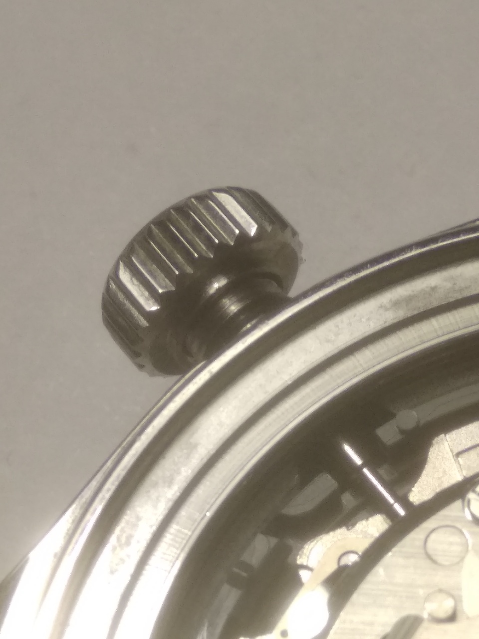 Взял со стерильным цифером, хотя лого там более или менее приличный. Основной минус – отсутствие антиблика. Стоит толстенный выпуклый сапфир (проверено прибором). Не стекло, а почти линза. За счет этого часы кажутся слепыми – масса бликов и игры света, хотя игра света в самом сапфире привлекает внимание светлыми окружностями внутри сапфира. Индексы стоят ровно и светомасса залита аккуратно. Безель с керамическим инсертом и стоит мертво: четкое вращение, ни намека на люфт и бэкплей. Люм только на метке. Цифер санберст серый – очень приятный цвет, специально взял такой. Между ушами корпус обработан лучше обычного – его полировали. Следы вырубки еле видно под углом. Со стороны крышки на выточке под браслет между ушами отчетливо видно следы инструмента. Голова на резьбе, футор длинный и с сальником. Резьба на крышке больше обычного, на самой крышке имеется гравировка Большой волны. Корпус по бокам зеркальный, сверху брашированный. На переходе верхняя-боковая поверхности зеркальной фаски нет, как на аналогичном SEESTERNе целиком брашированном. Люм хороший – суперлюминова, но только на стрелках и на метке безеля. На индексах люм не похож на обычный китайский, который светит ярко первые 5 мин, а потом тухнет навсегда. Этот люм светит еле-еле, тускло, сколько его не засвечивай, но долго, так же, как и на стрелках. Похоже на сильно разбодяженную люминову