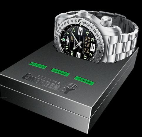 Чтобы гарантировать надежность часов Emergency II, компания Breitling также разработала зарядное устройство, служащее контрольным прибором, для периодической перезарядки аккумулятора и последующей автоматической проверки бесперебойности работы передатчика.