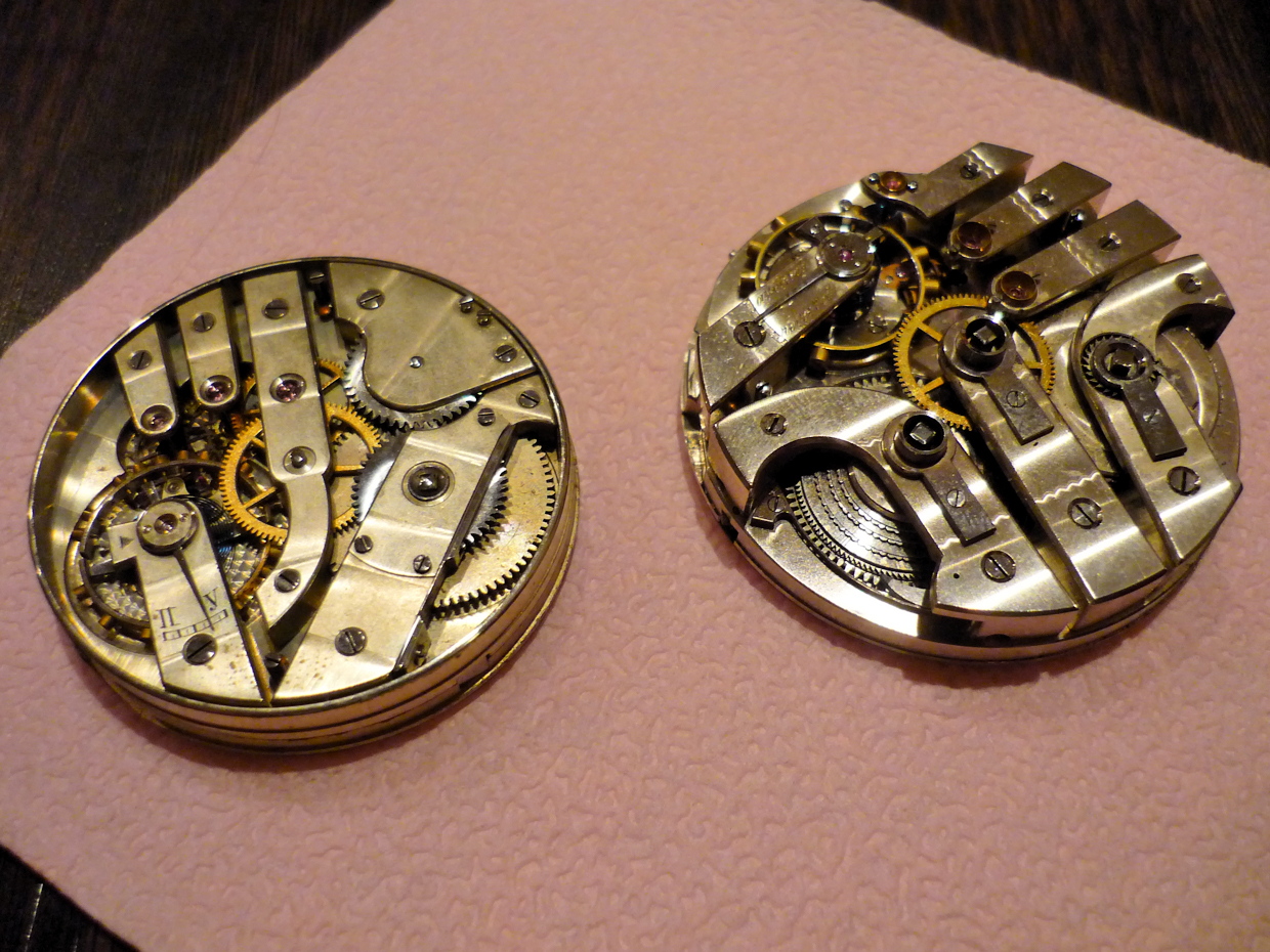 Золотой корпус в лихие времена владельцы сдали по весу, а мех, как и положено, лет 50-70-90-??? отлеживался в фирменной бурешной коробочке..... Мне коробочка была без надобности, тем более, что за нее просили, как за гидросамолет, а механизм схватил сразу. Цифер, как и бывает в таких случаях, практически, в идеале. Его диаметр -45 мм, у меха - на миллиметр меньше. Тут наручка вырисовывается знатная... С моими любимыми арабскими цЫфирями и заводной головкой на 3 часа. С Ле Культровским механизмом...И с синими винтами и прозрачной задней крышкой.... Слюну начал пускать уже сейчас...