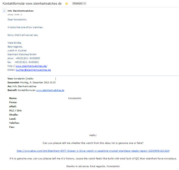 | STEINHART на eBay, вторичный рынок. | Slesarier | Steinhart | 33 | 21.07.2011 18:24 |