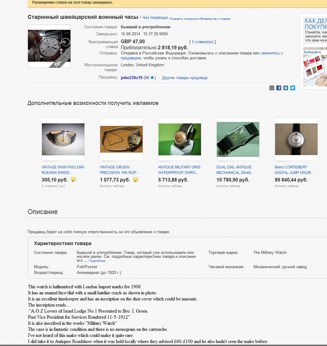 Помогите оценить оригинальность этих часов Полет | AlexRupin | Что за часы? Сколько стоят эти часы? | 18 | 29.08.2010 14:50 |