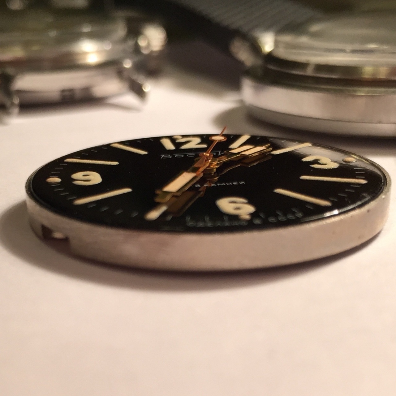 На всех остальных циферблатах край привлекающий к стеклу ( распорному кольцу стекла) реально убит и нет оптических эффектов, на фото моих и Zavar это четко видно - по краю циферблата "стертое кольцо" вплоть до метелла. А это цифер в идеале.
