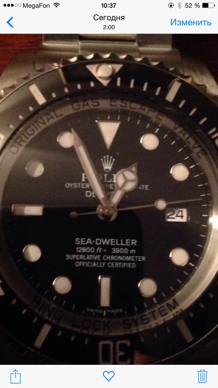 Обратите внимание на надпись SЕА-DWELLER. До 2010 года средняя горизонтальная черточка буквы "Е" доходила до конца. После - она чуть меньше верхней и нижней. Тире "-" между словами до 10-го года длиннее, чем на часах после. На тртьих часах "е" как на часах до 10-го года, а "-" - после. Это раз.