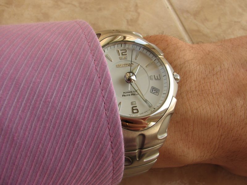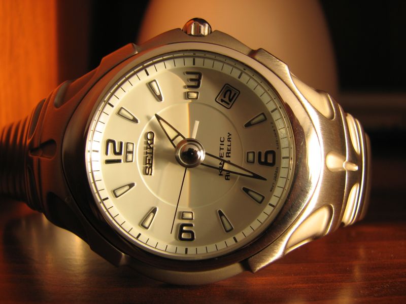 Однако, произошло то, что могло произойти. Часы приглянулись мне самому. На них было написано «KINETIC». Именно это слово в июле 2009 я и набрал в поисковике. Я стал читать, стал собирать информацию. Я узнал, что эта надпись на циферблате принадлежит «SEIKO». Если честно, то мне очень, понравилась сама эта идея – автокварц. Идея, собственно, вечного двигателя. Казалось бы, столько копий сломано на эту тему. Опять же, есть механика с автоподзаводом. Не буду на это ничего возражать. Лично мне, в автокварце понравилось то, что эта древняя идея было решена на новом, современном уровне, уровне моего века. Те электроны, что рождаются под циферблатом в генераторе, накапливаются в аккумуляторе, а два двигателя, что крутят стрелки - все это работает! Ра-бо-та-ет!!! Вот она, Легенда! Конечно, можно возразить, - «да, каждый из нас за свою жизнь уже видел с десяток-другой генераторов, перезарядил около тысячи раз всяких аккумуляторов, а моторов различных конструкций в детстве только ленивый не разбирал». Ну, очень ленивый. «Все так», - скажу я, - «но только вот это все вместе работает (и работает) у меня на запястье». Такое маленькое, что должно быть другие, маленькие люди создали все это. Тут можно рассмеяться и сказать, - «кто же еще, конечно, японцы!»