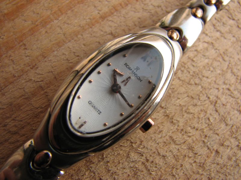 Я очень люблю свою жену. В этом году случилось пятилетие нашей совместной жизни и я подумал: «что мне подарить?». Но в голову совершенно ничего не приходило. В какой-то момент я вспомнил, что давным-давно, шесть лет назад, когда еще ухаживал за своей будущей женой, подарил ей часы. Долго-долго их выбирал, месяц, наверно, ходил по магазинам. Часы были ROMANSON. (Вот они на фотографиях). Жена носила их года три. Со временем они обтерлись, поцарапались, часть цифр на циферблате отвалилась (!). С тех пор они лежали в ящике, а нового мы ничего не покупали.