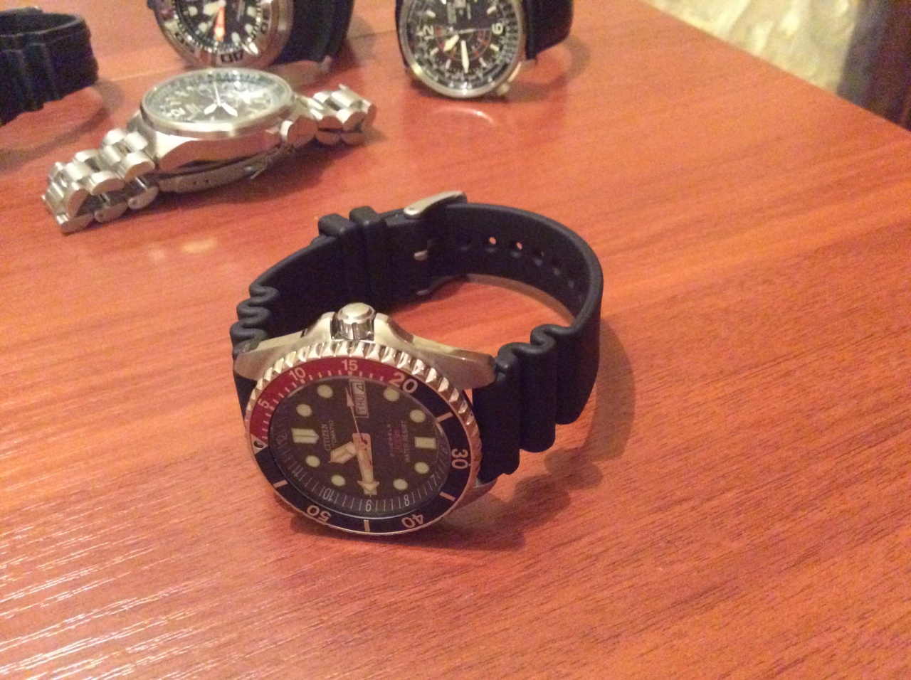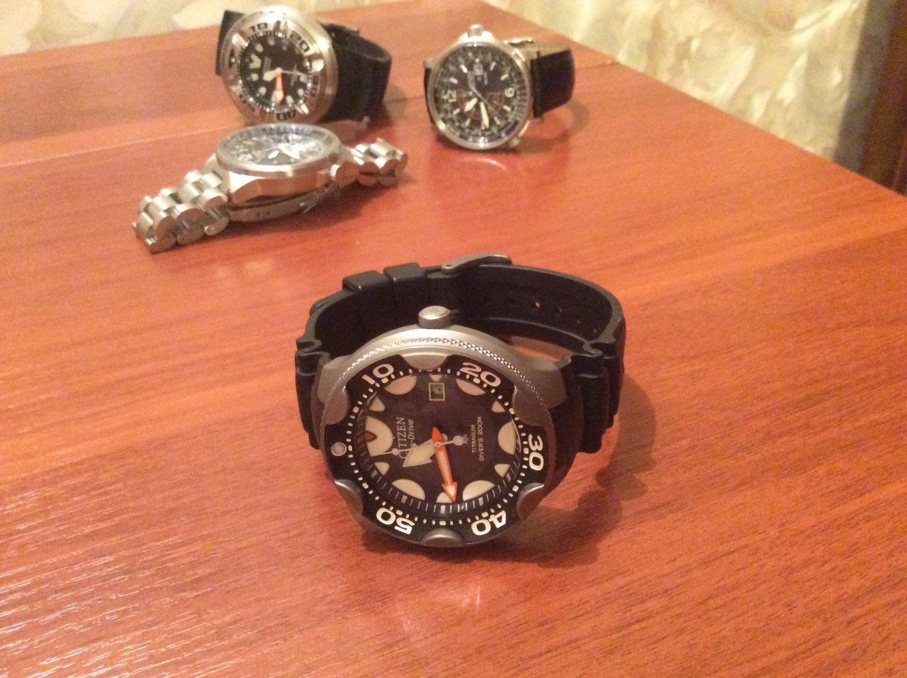 Citizen: EcoZilla Ti, JY8020-52E; Maurice Lacroix PT6058, Casio: Sea-Pathfinder SPF-60, Frogman GF-8230, Frogman GW-200Z, Frogman GW-225C, Frogman GW-200MS, GW-5000, Manaslu PRX-2000T Были: Casio King GXW-56, Seiko Sumo, MTG-S1000D