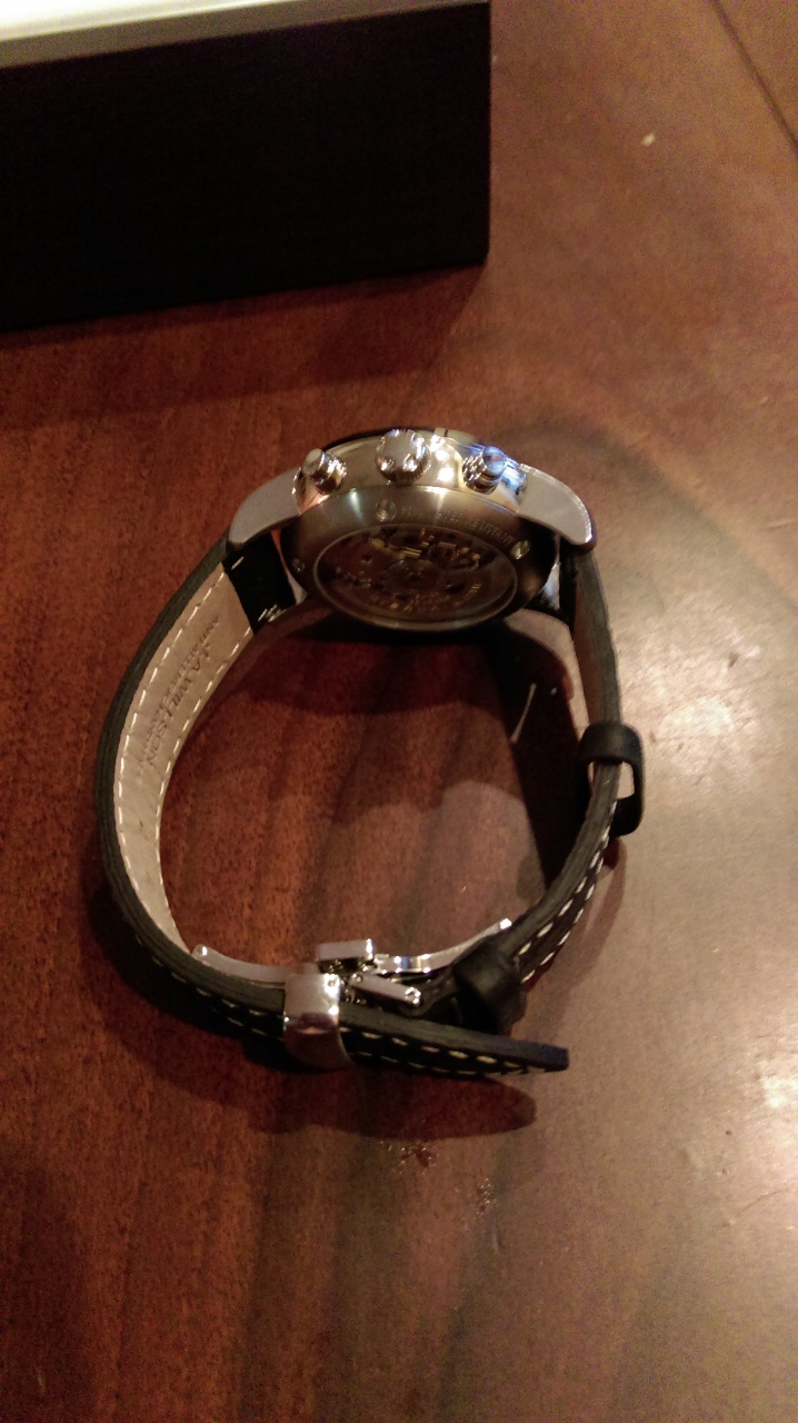 Попробую перевести: Родной ремень оказался мал, поэтому в магазине предложили ремень марки J.A. Willson и вместо классической застёжки установили клипсу. Но дорогим часам, как мне кажется, подошёл бы более солидный и дорогой ремень. Хотя Виллсон сам весьма люблю. Ориентам очень идёт. А впрочем, можно сделать фотоснимок родного ремня?