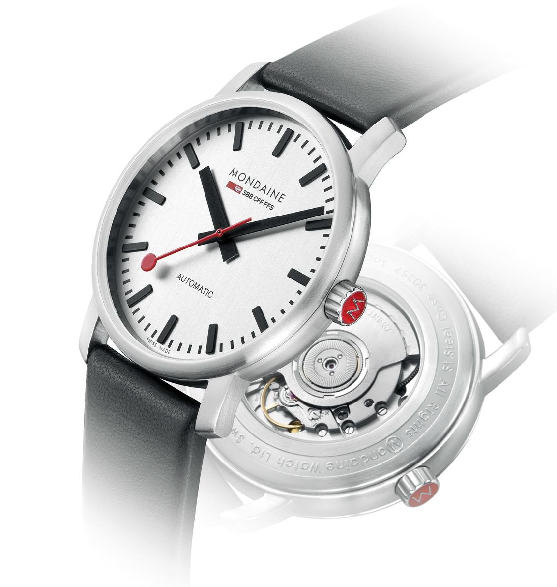 Новинка имеет имеет круглый корпус из матовой нержавеющей стали, диаметром 41 мм, толщиной 8,8 мм, водонепроницаемый до 30 метров. На торце рифленой заводной головки, расположенной на 3 часах, имеется красная вставка с логотипом бренда Mondaine. Сапфировое стекло установлено на передней стороне корпуса (с антибликовым покрытием) и на его задней крышке. Циферблат матовый, серебристого цвета с накладными черными часовыми индексами, часовой и минутной стрелками, а также с красной секундной стрелкой с круглым указателем. Модель оснащена швейцарским автоматическим механизмом ETA 2892-2, на 21 камнях, с балансовой частотой 28800 полуколебаний в час (4 гц), 40-часовым запасом хода, функциями индикации часов, минут, секунд (посредством соответствующих центральных стрелок).