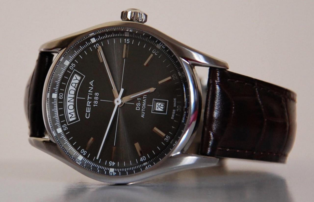 За Сертину (У DS-1 только механика) только в стали, на браслете! Если старая модель (без люма, только дата) - черный или белый цифер, если новая то с днём-датой в черным цвете на браслете или цвета графит на ремешке. Я бы заморочился на новой модели день-дата цвета графит и докупил браслет. Цвет очень красивый как на картинках, так и IRL