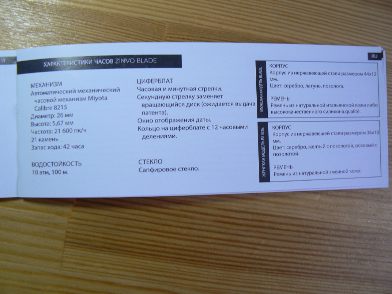 Теперь о часах! Упакованы в картонную коробку, выполненную в виде пенала. Внутри конверт с инструкцией на разных языках (английский франузский, немецкий, испанский, русский), салфеткой, пластиковой гарантийной картой. Ну и сами часы.