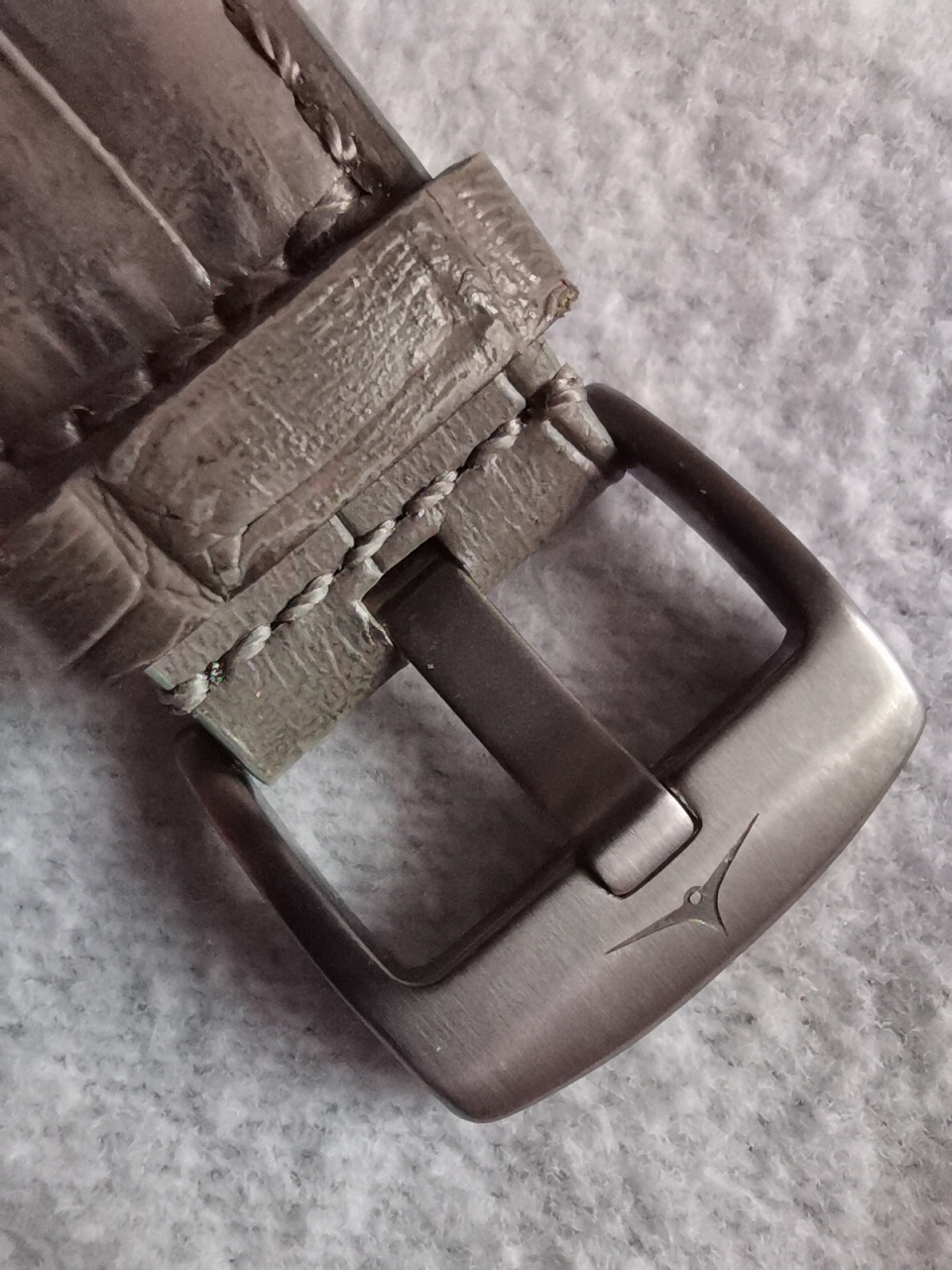 Родной ремень стоял кожаный, белого цвета, с функцией "быстрой замены" и стальной баклей с лого производителя, который я сразу заменил на заранее купленый силиконовый (мне он показался более подходящим, поскольку планировал носить часы на работе, где, по роду деятельности, часто контактирую с жидкостями)!