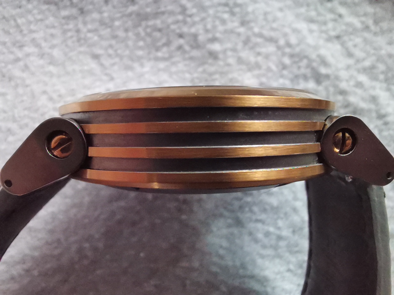 Первое впечатление от часов было довольно положительное! Тяжёлый массивный стальной корпус. Дужки представлены отдельными элементами, которые прикручены к корпусу (как у Cuervo y Sobrinos Historiador Vuelo). Прозрачная задняя крышка, через которую видно Miyota 8215. Что меня приятно удивило, ZINVO начали ставить новый сектор автоподзавода, украшенный фрезеровкой и собственным лого (на первых моделях, судя по доступным в сети фото, стоял базовый Миётовский сектор, который выглядит убого и придаёт часам некую "дешевизну"). На задней крышке также присутствует гравировка с названием модели, серийным номером и информацией о водозащите (на первых моделях она была несколько иная, с минимумом надписей простой гравировкой).