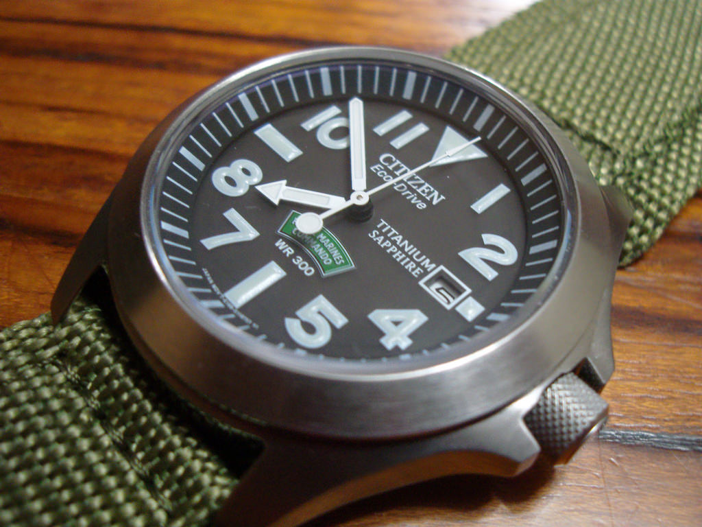 Ситизен Роял Марин смотрел и на ремне и на браслете. Они у нас в России дороже 17 тыс., а заказывать напрямую изза бугра я не умею. Кроме того вид у них слишком брутальный, на кевларовом ремне только для аутодора, а на браслете слишком сильно за бюджетом и все равно с пиджаком не наденешь в отличие от тех же гамильтонов.