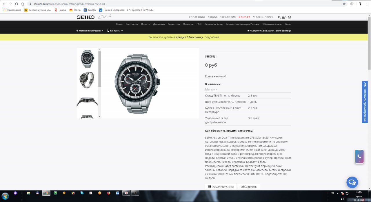 Именно такая цена была указана в моей корзине, где были 4 модели часов Seiko Astron, которые я рассматривал к приобретению.