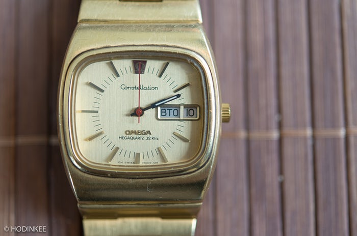 Была (есть) еще одна Omega у Архипыча, подарочная. Золотой кастомный Constellation на кварцевом калибре Megaquartz, c русским календарем с подарочной гравировкой.