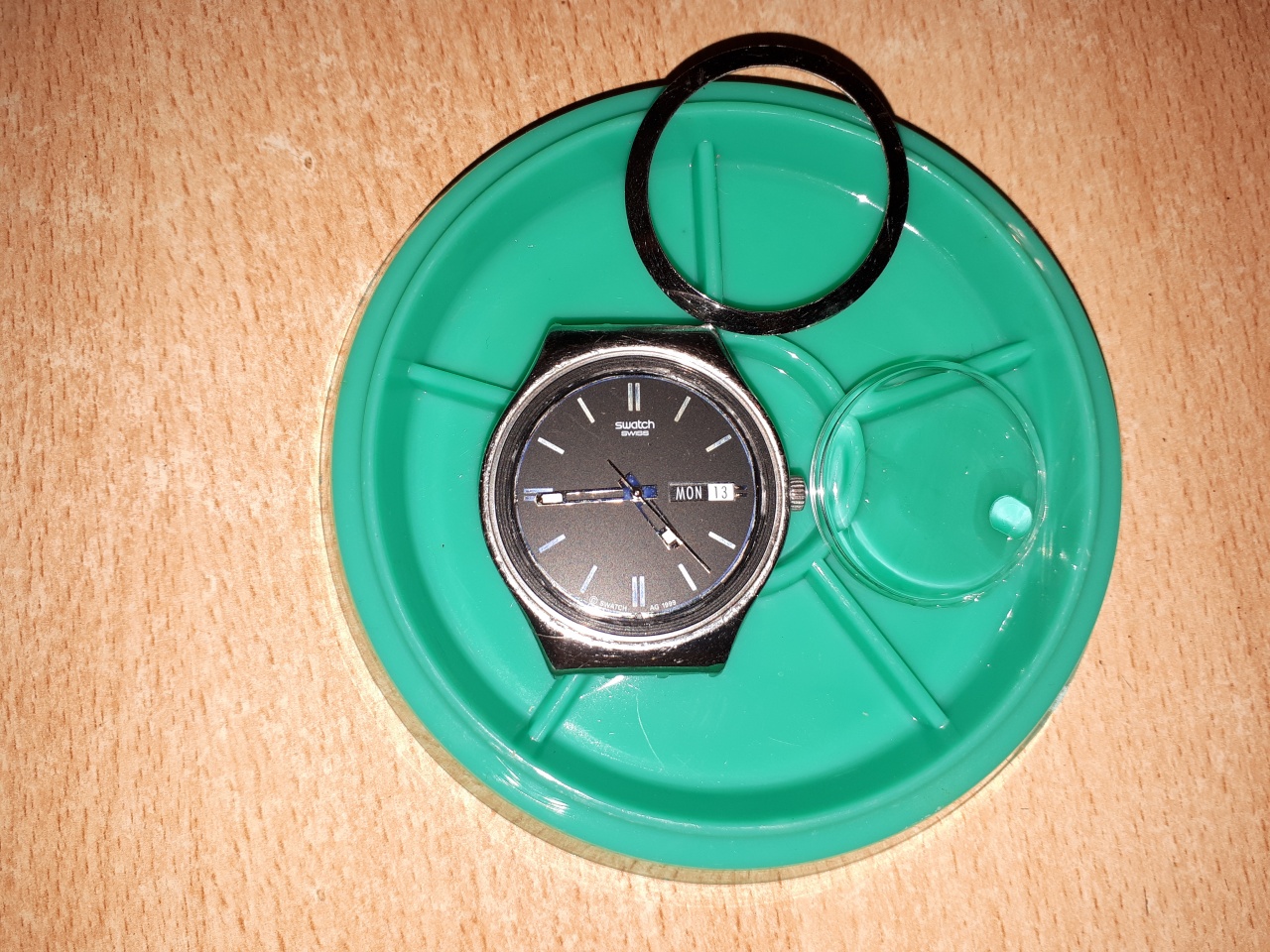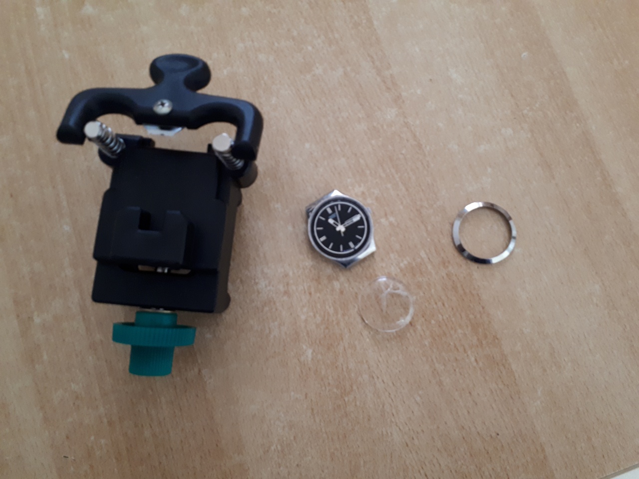 После полировки собираете все в обратном порядке. Вставляете (лучше конечно проклеить еще) стекло, напрессовываете безель (возможно понадобиться специальный пресс), очищаете внутреннюю поверхность стекла и циферблат, вставляете механизм с цифером в корпус, вставляете заводной вал. Закрепляете винты, устанавливаете заднюю крышку, не забыв установить на место уплотнительную резинку, желательно смазав ее силиконом..