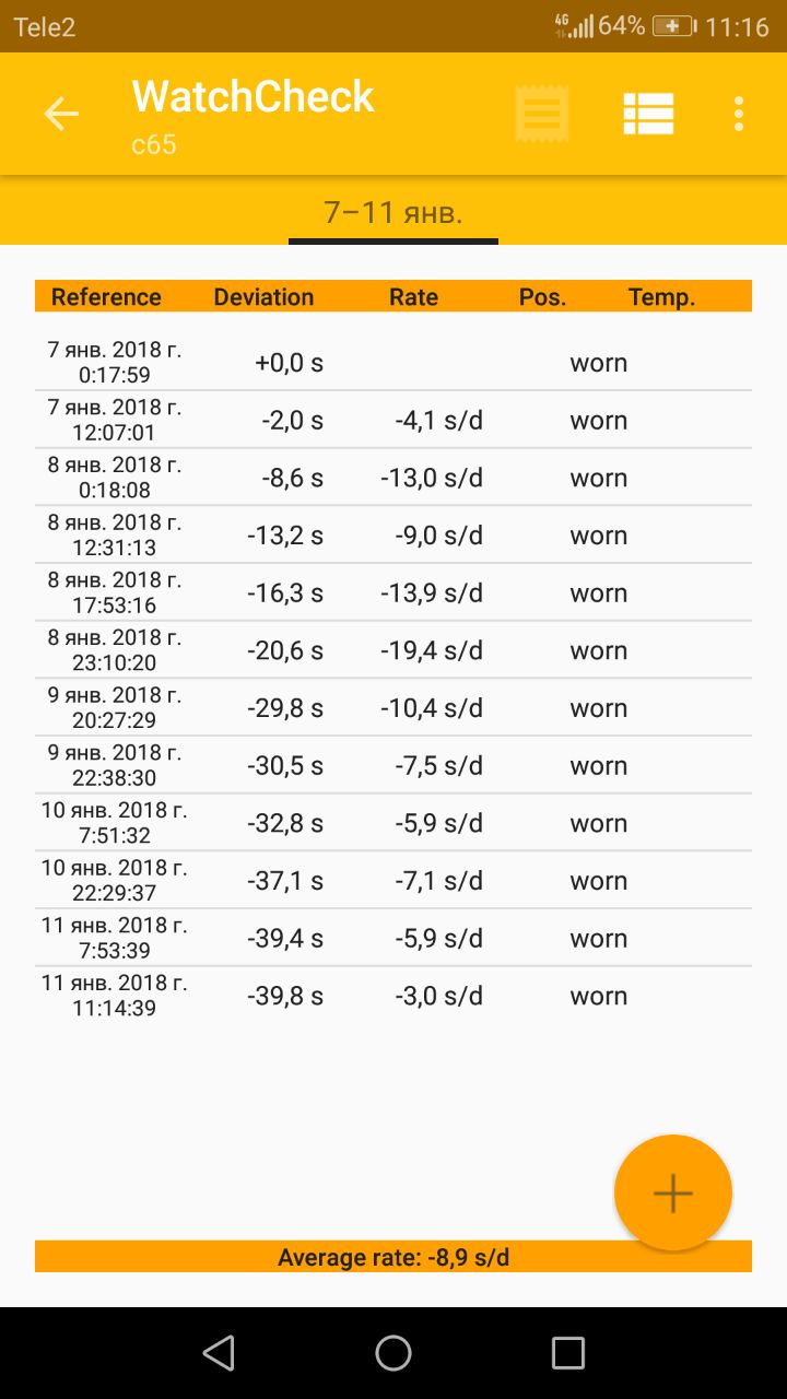 Вообще при носке дают около секунды в плюс, за сутки неиспользования 1,5 секунды в минус.