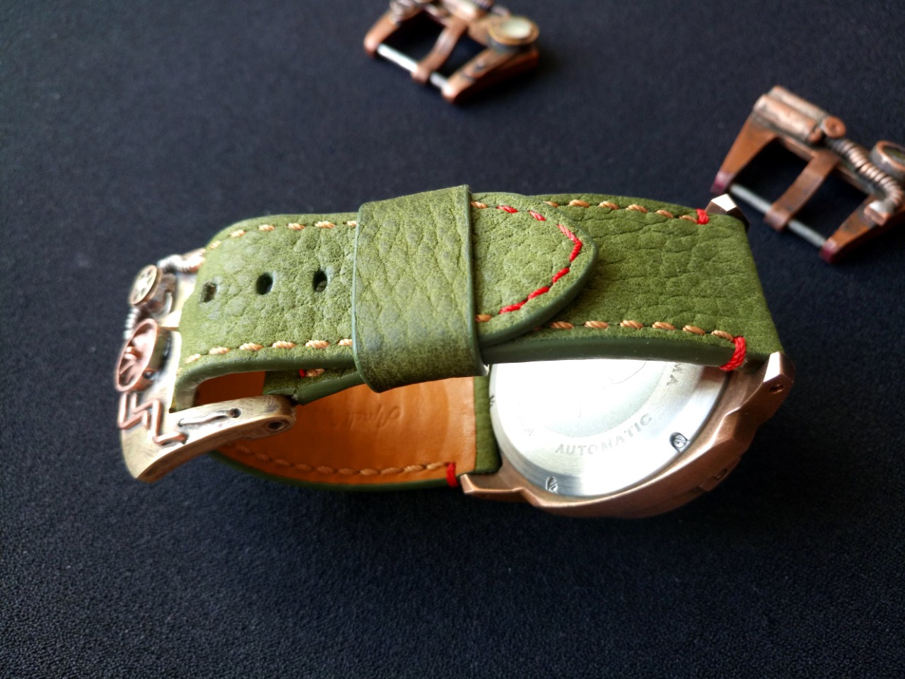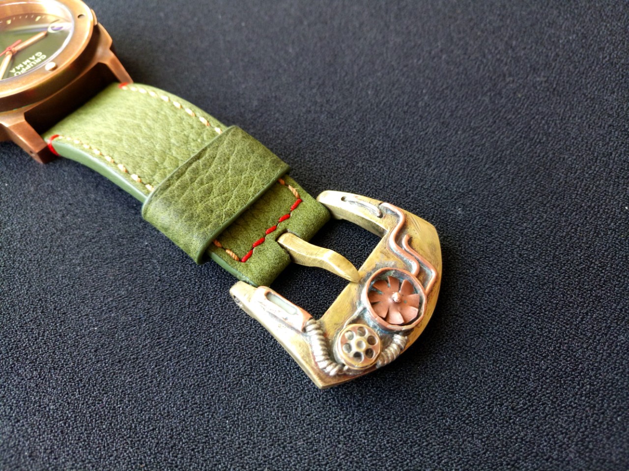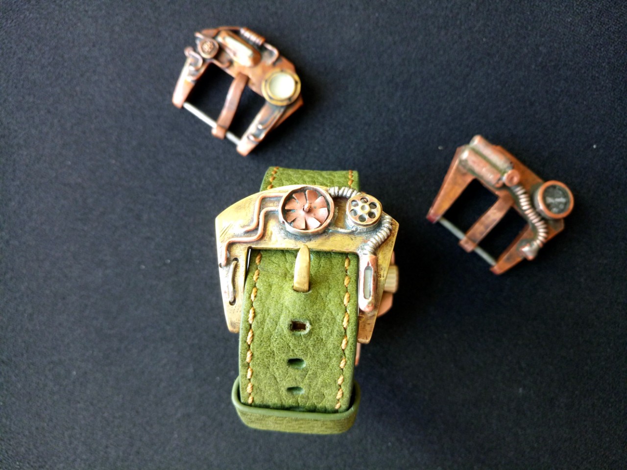 | Часы Gruppo Gamma на зеленом теленке, пряжки из меди/латуни в стиле "стим-панк". |