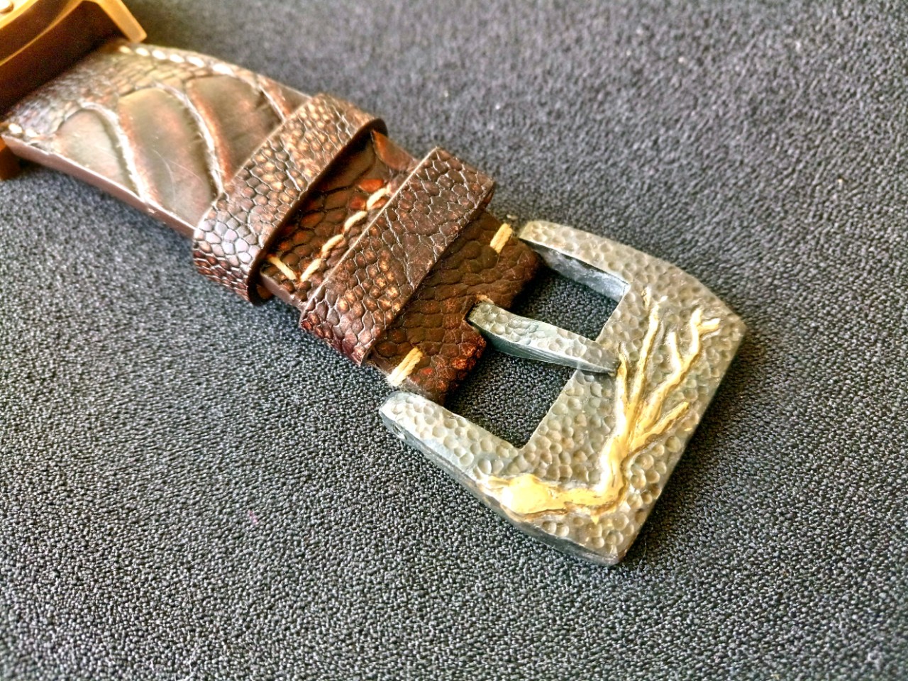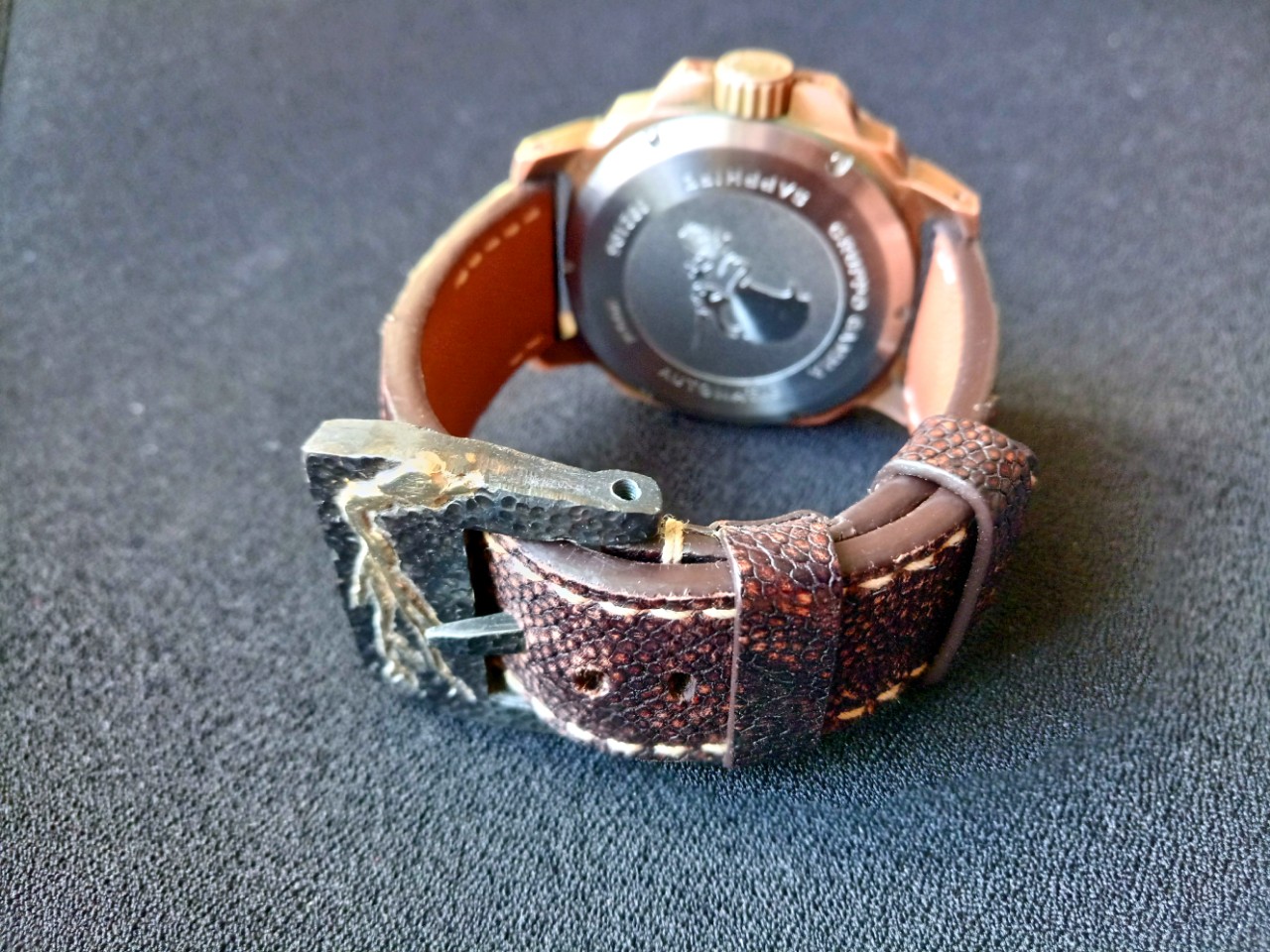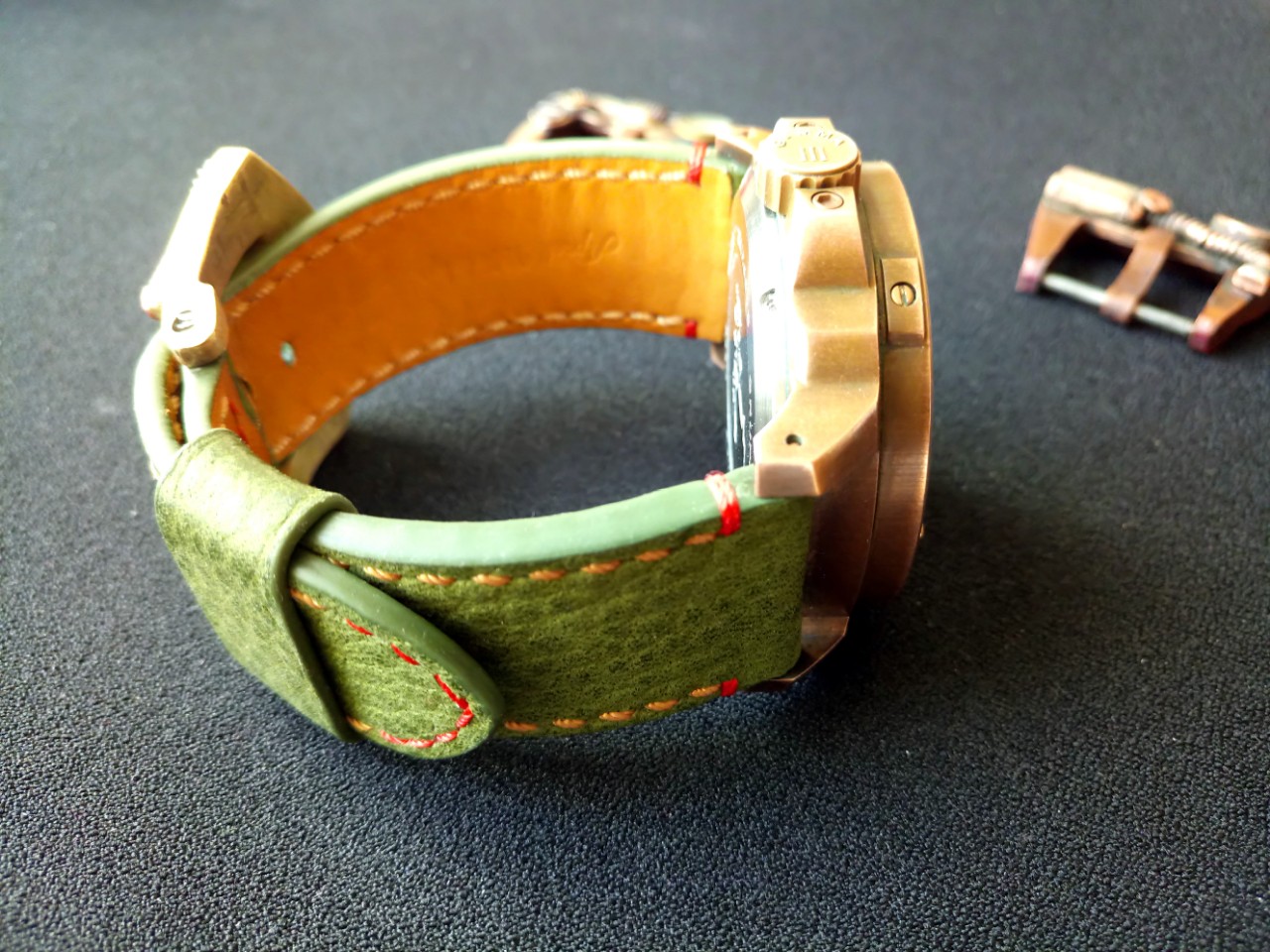 | Часы Gruppo Gamma на зеленом теленке, пряжки из меди/латуни в стиле "стим-панк". |