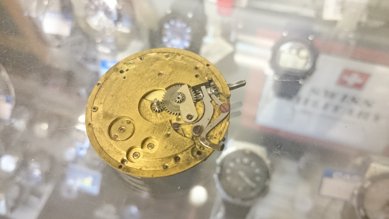 В этом механизме функция перевода стрелок включается рычагом, находящимся под циферблатом и выходящим наружу под крышкой, возле стекла. Вытягивая рычаг, переводим механизм в положение перевода стрелок. Для возвращения в нормальное состояние нужно задвинуть рычаг обратно.