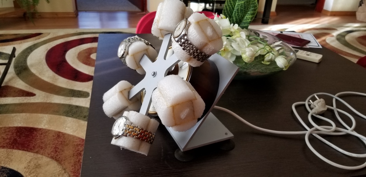 разбираешь, вытаскиваешь двигатель с редуктором, на на вал перпендикулярно крепишь плечи (я из линеек сделал), оборачиваешь их и вуаля - виндер для часов (до 4-х!!!) готов. запитать можно от юсб зарядки или тех же батареек - около 20 об/мин, на направление вращения - тумблер, если "по взрослому" и нужна программа (что бы не следить и вовремя включать, выключать, переключать - добавь контроллер, простейший, от ардуино платку, например - ее даже дети шить умеют)