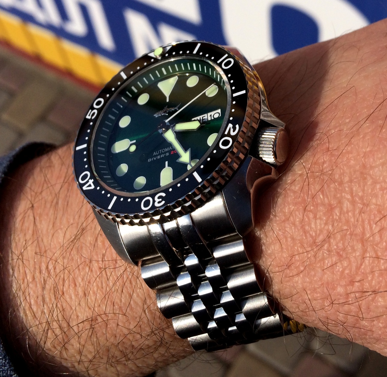 Но прошло 8 лет, сейко выпустили реинкарнацию своей знаменитой модели skx007 и я их увидел. Циферблат конечно у них стал привлекательным! Накладные метки, цифра 5 в стиле эмблемы Супермена, все это радует глаз. Но опять же, минеральное стекло, безель алюминиевый, с их ценой покупка не казалось такой заманчивой.
