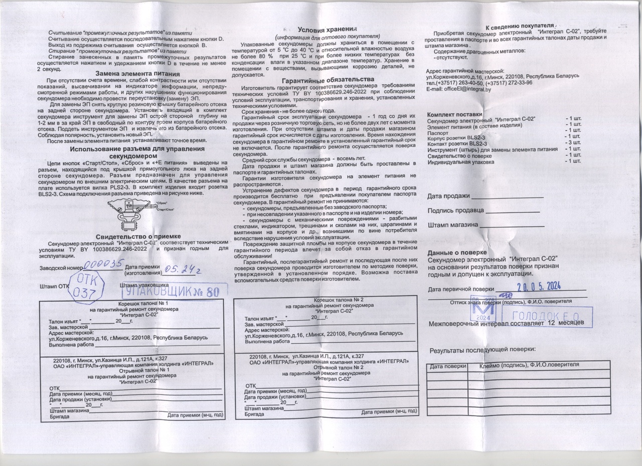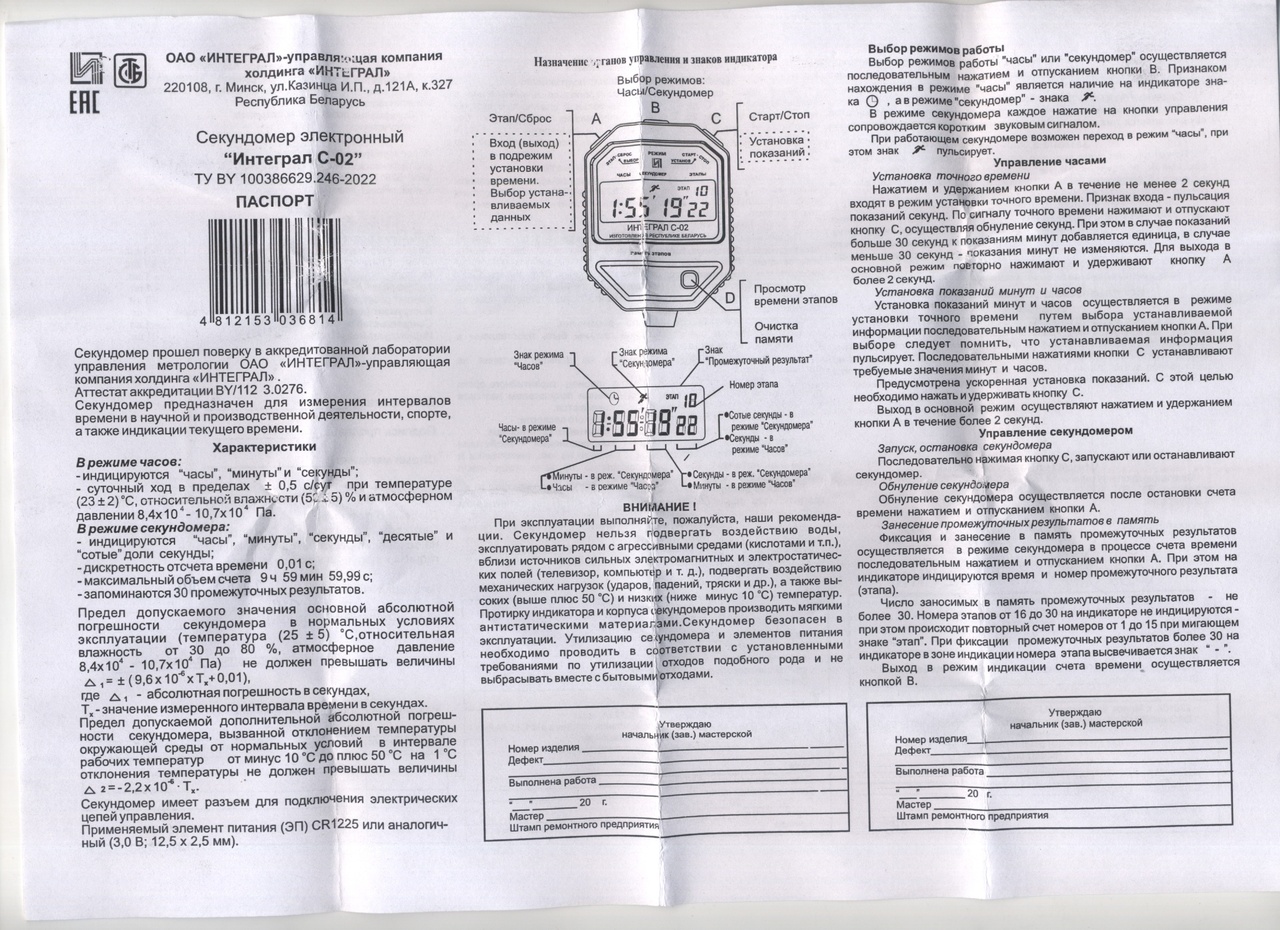 Секундомер Интеграл С-02 - новинка 2024 г.